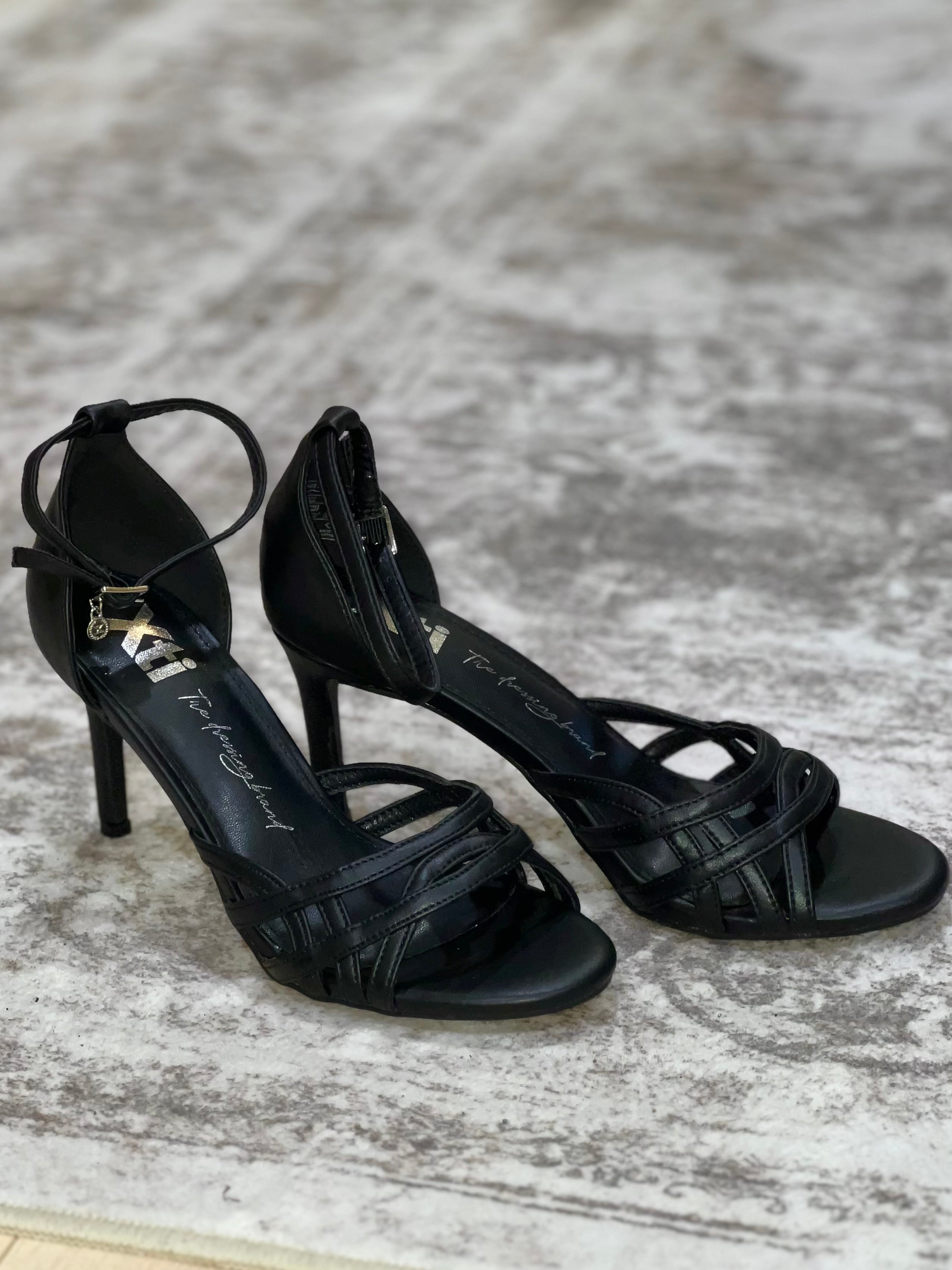 Black Peep Toe Heeled Sandals