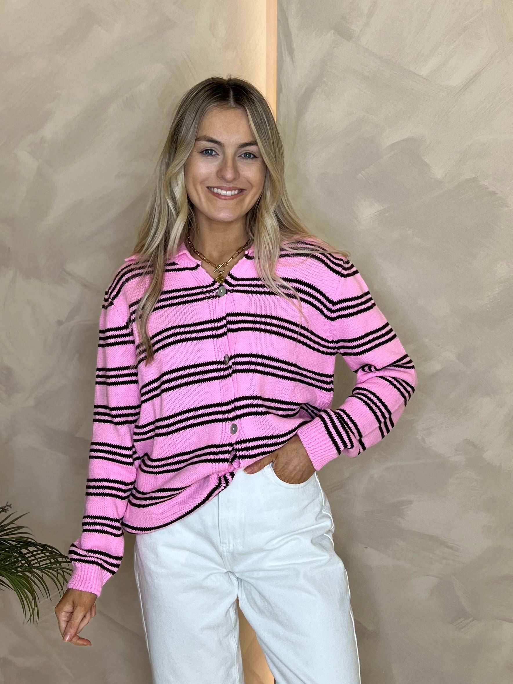 Bronte Stripe Collar Cardigan - Pink