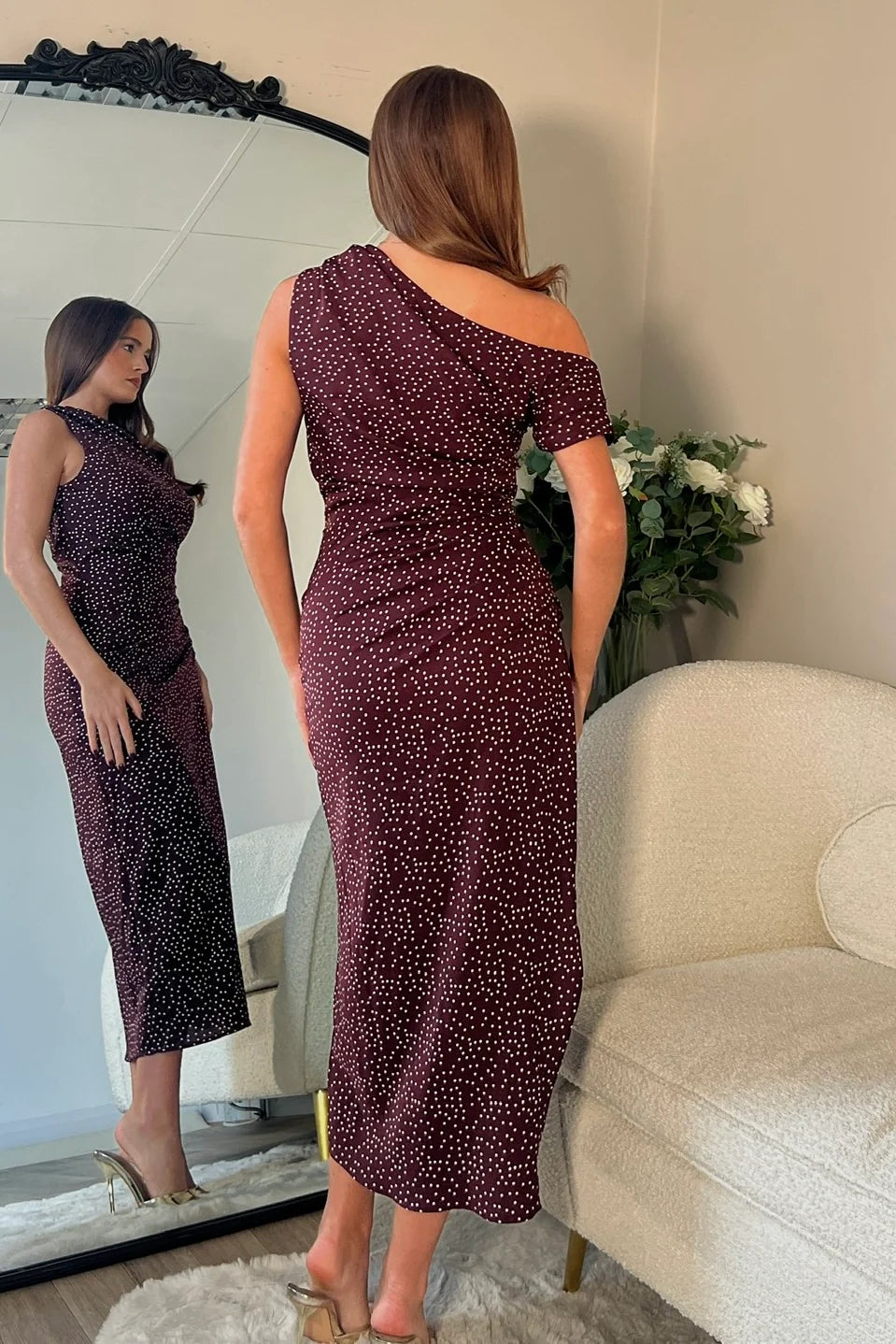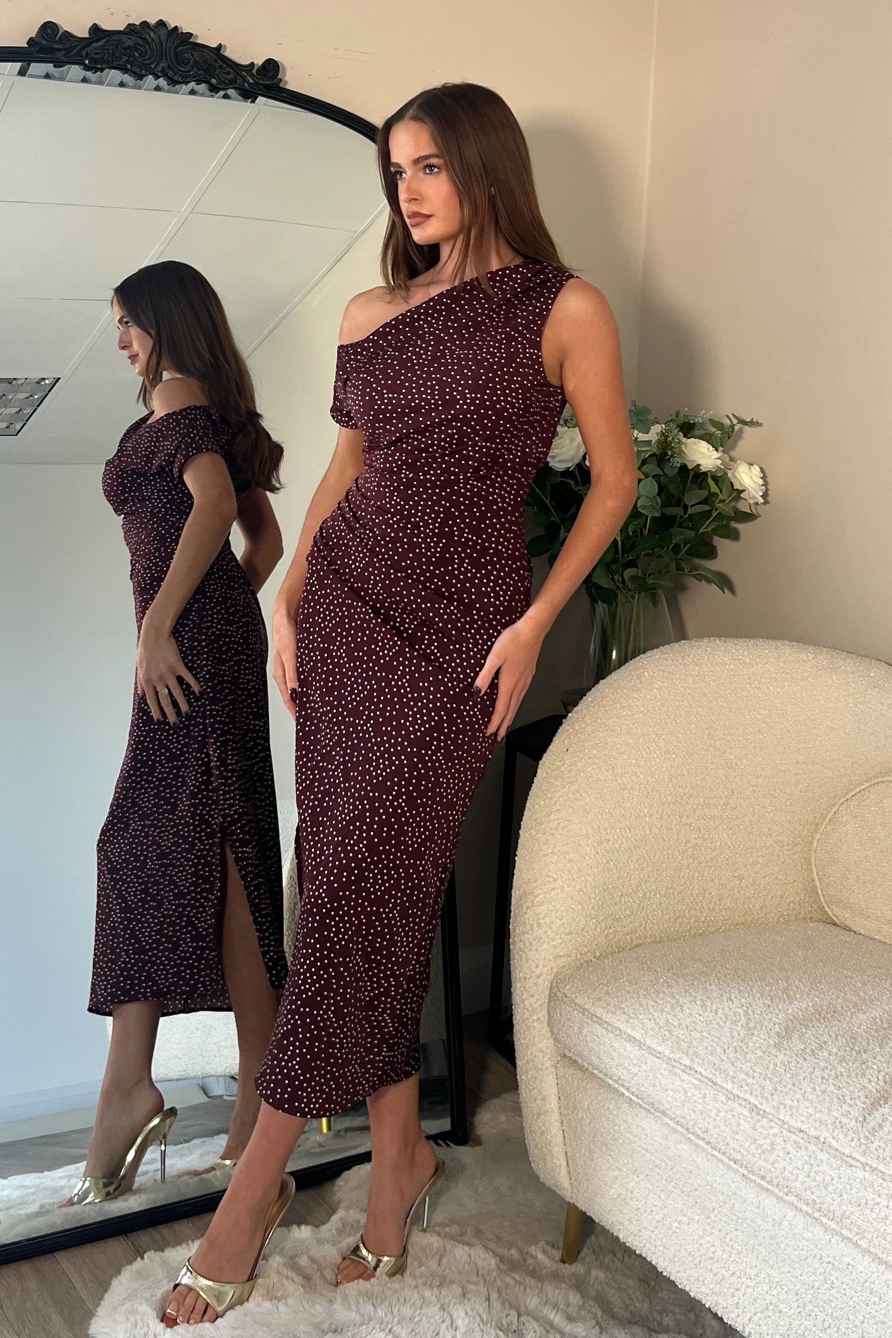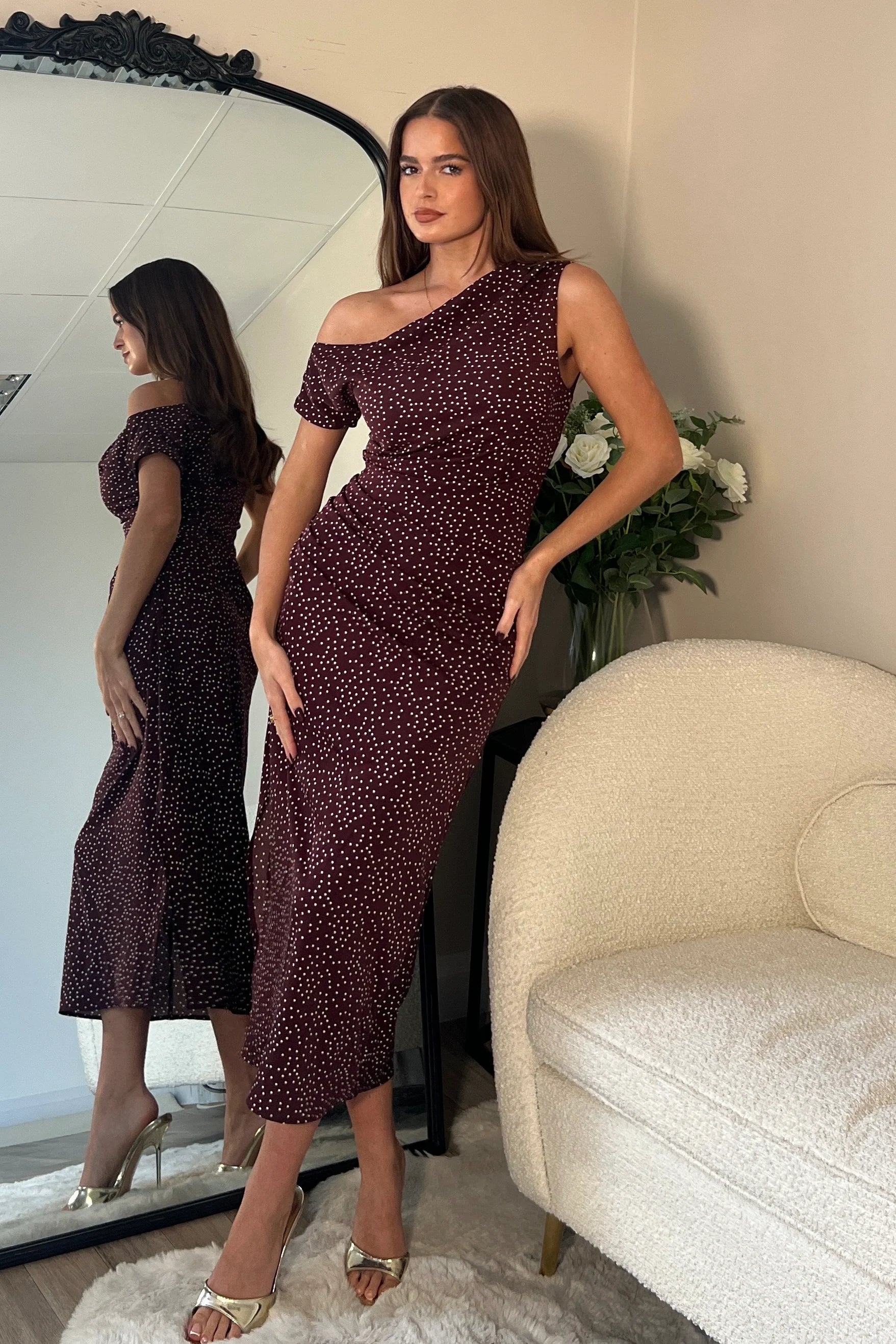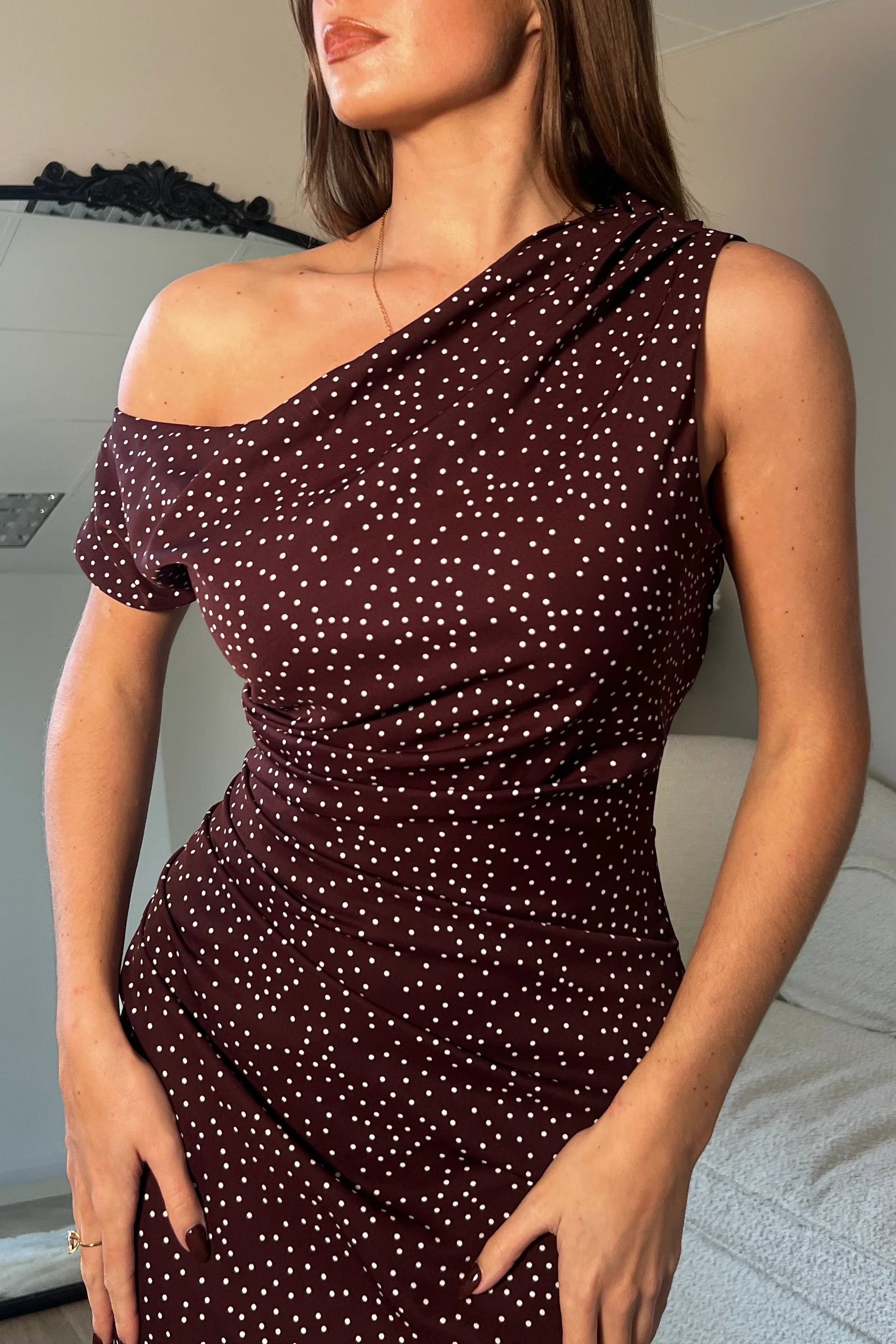 Donna Asymmetric Neckline Midi Dress - Brown Spot