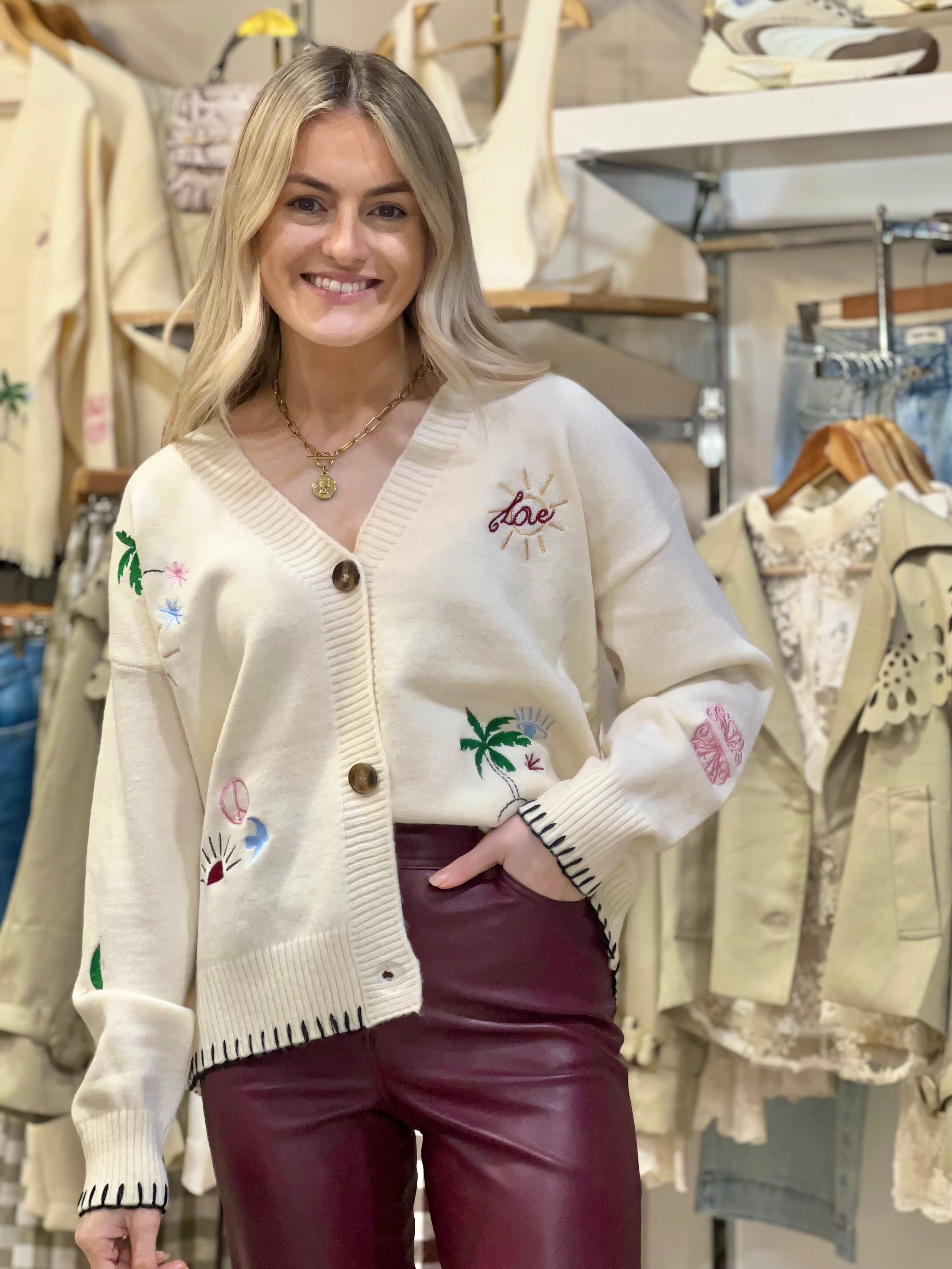 Embroidered Cardigan - Cream