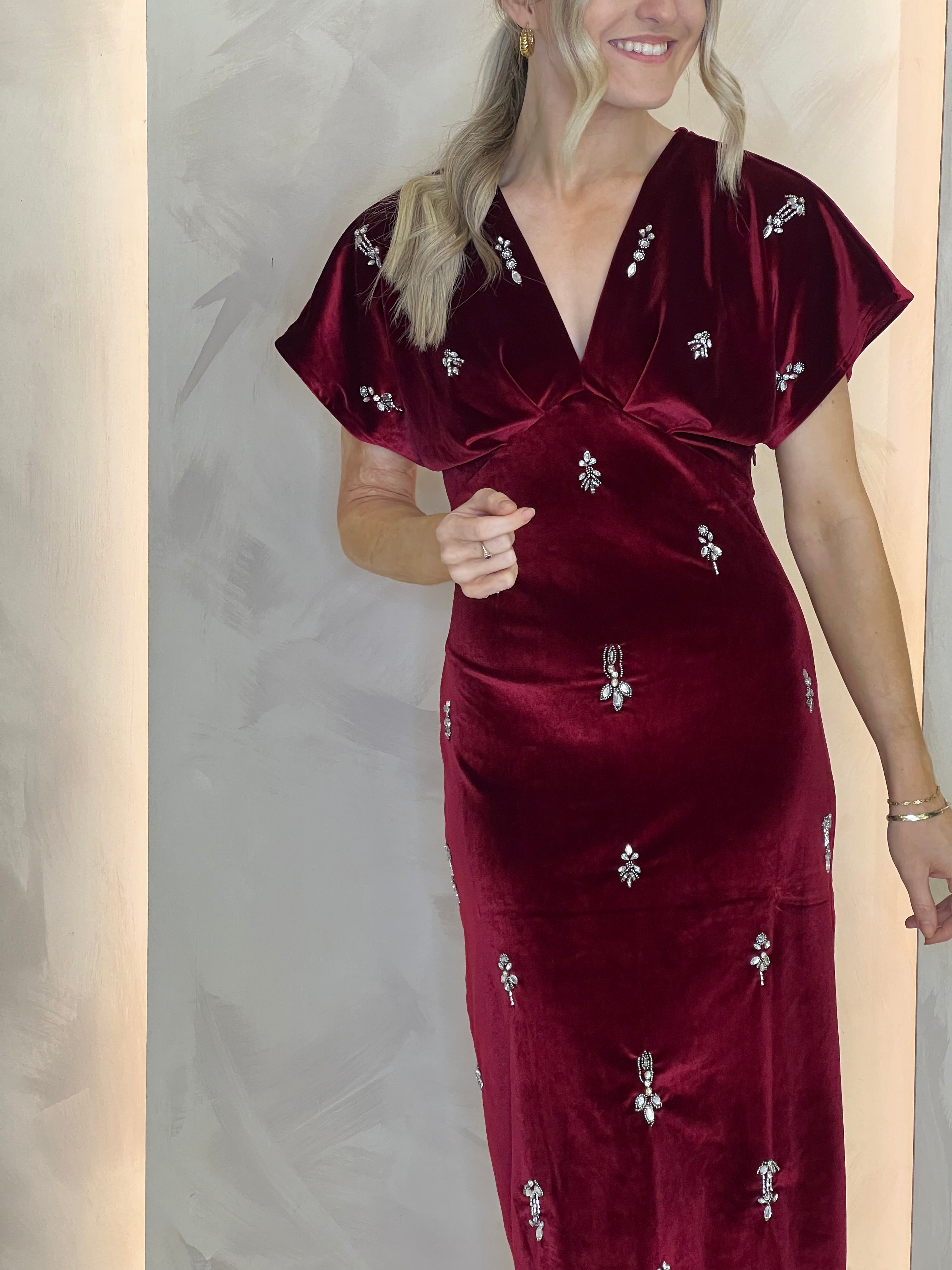 Farah Velvet Embellished Midi Dress