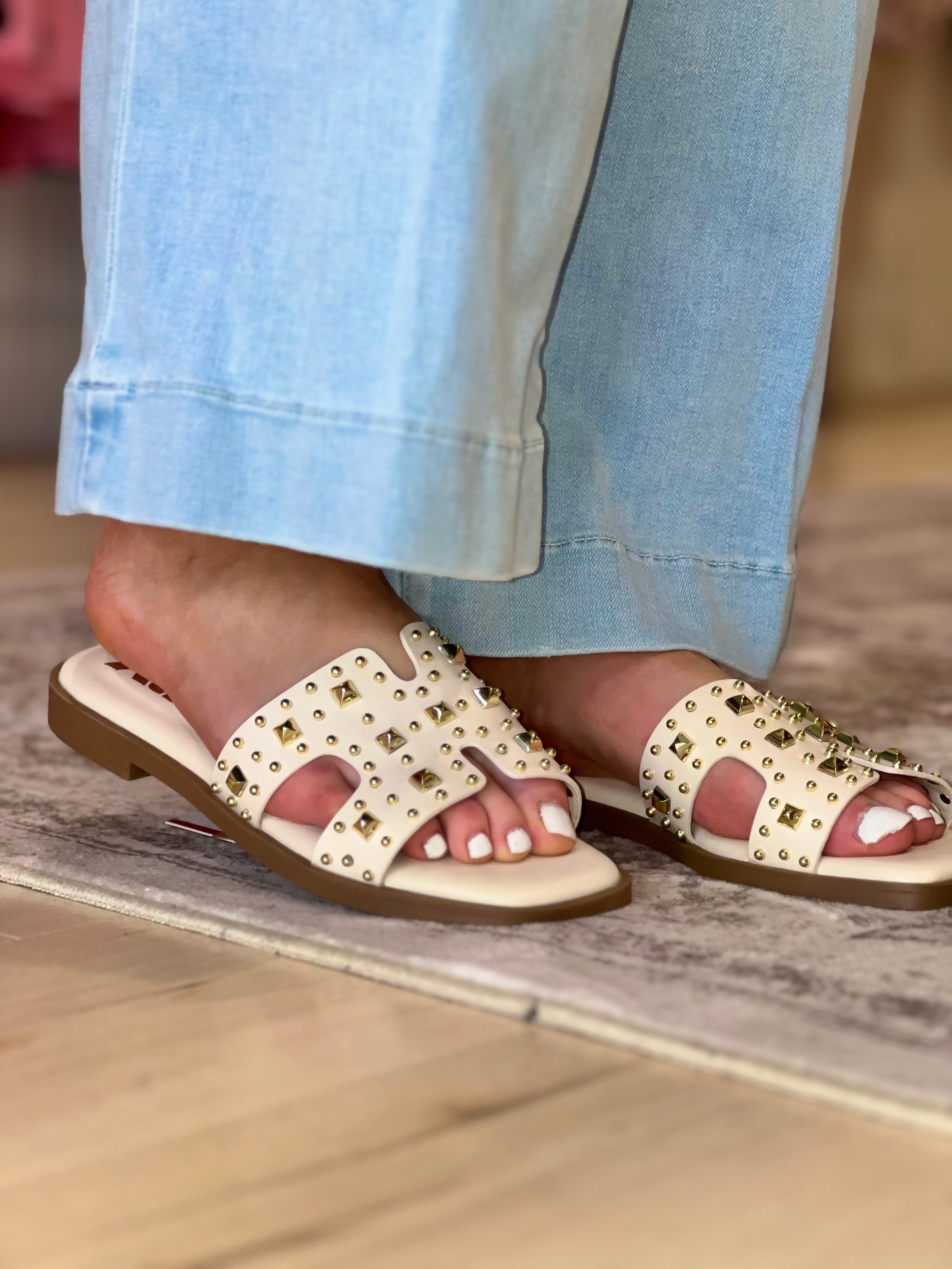 Flat Stud Sandal - Cream