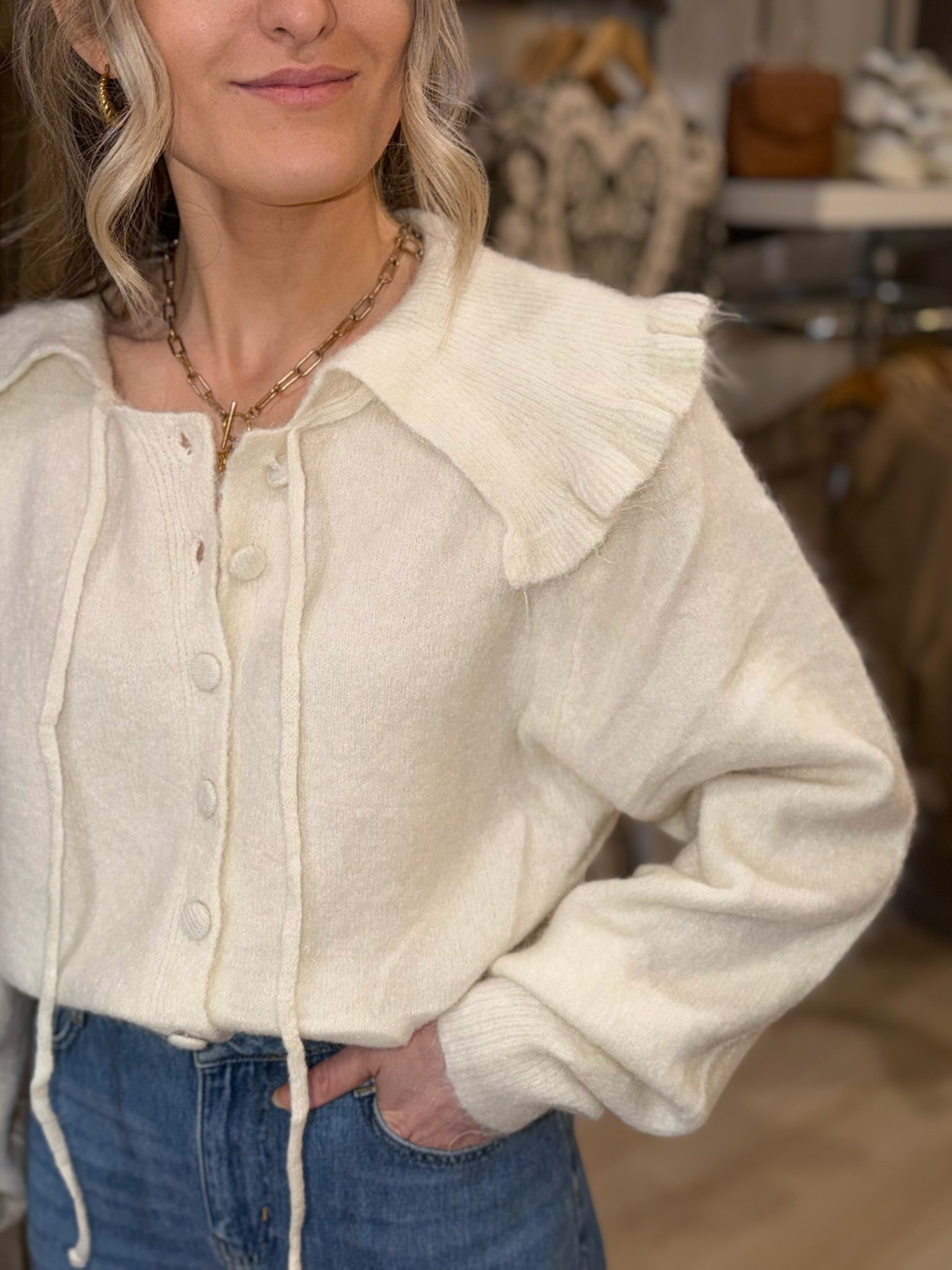 Frill Cardigan - Cream