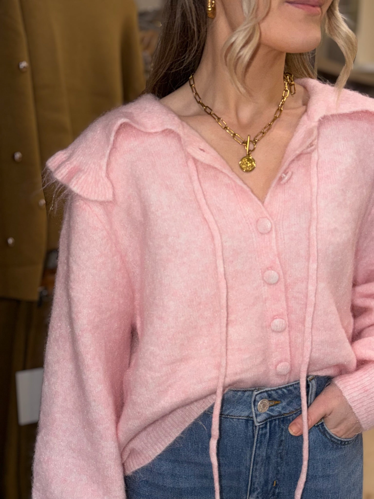 Frill Cardigan - Pink