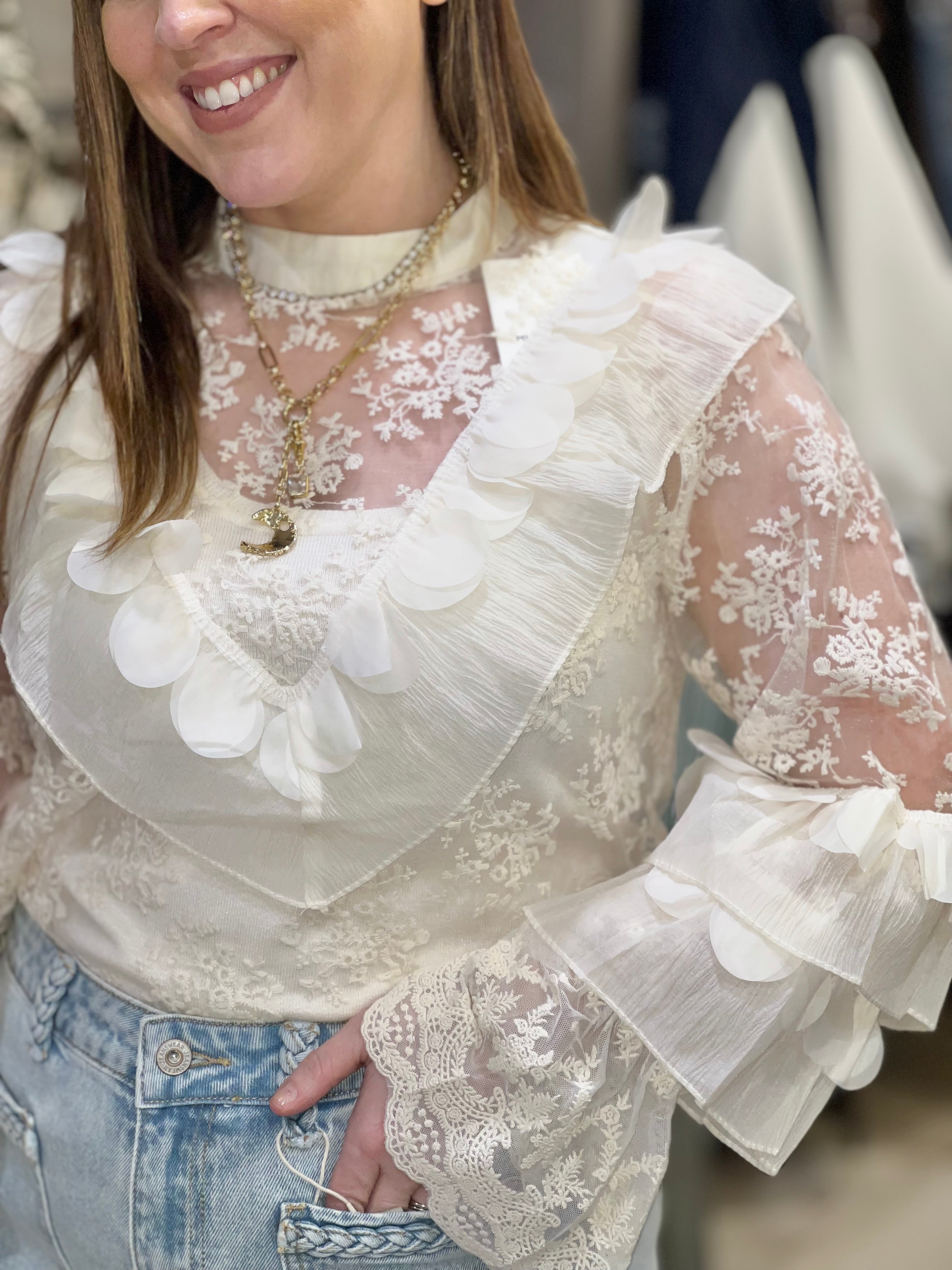 Frill Lace Blouse - Cream