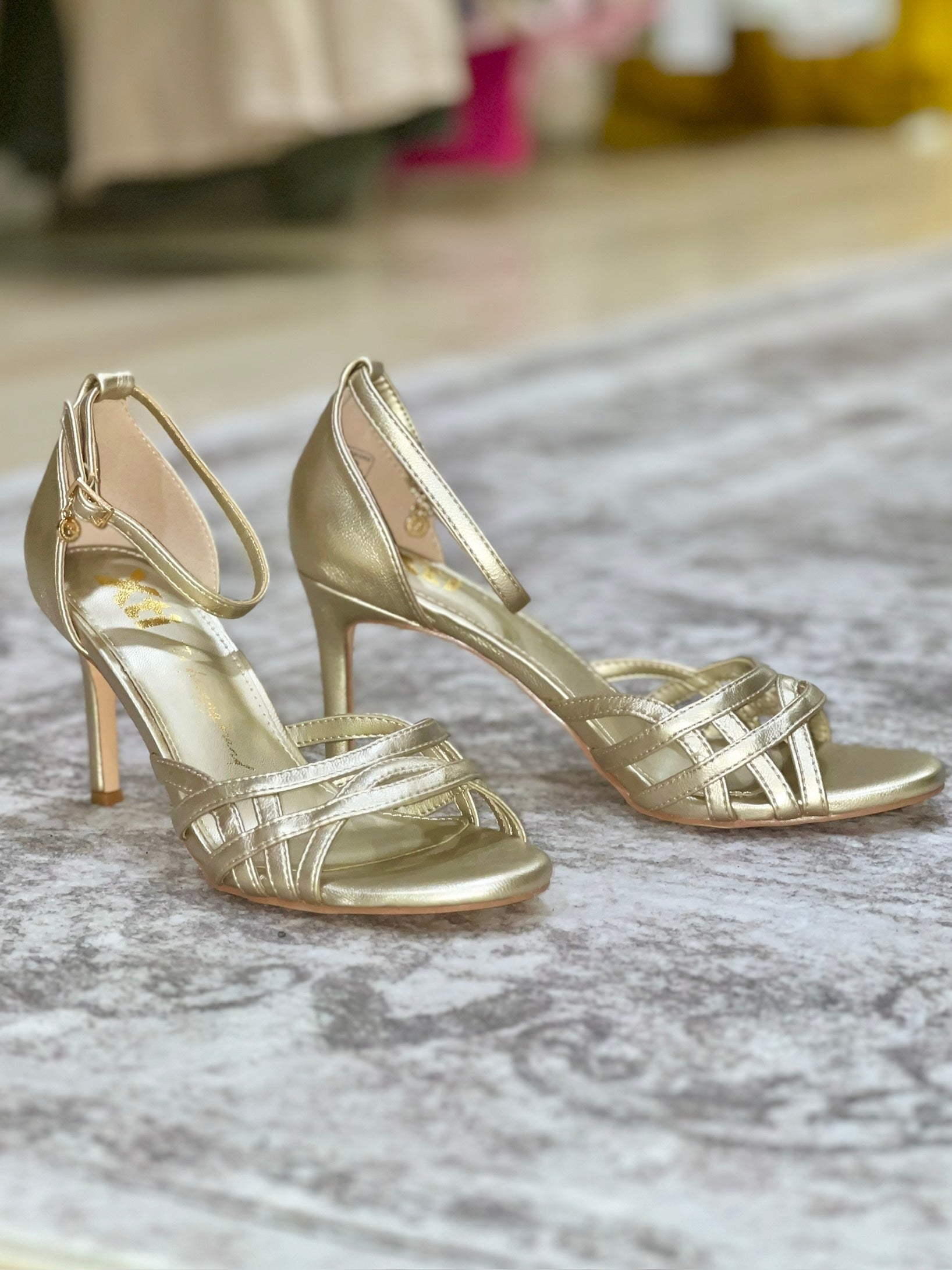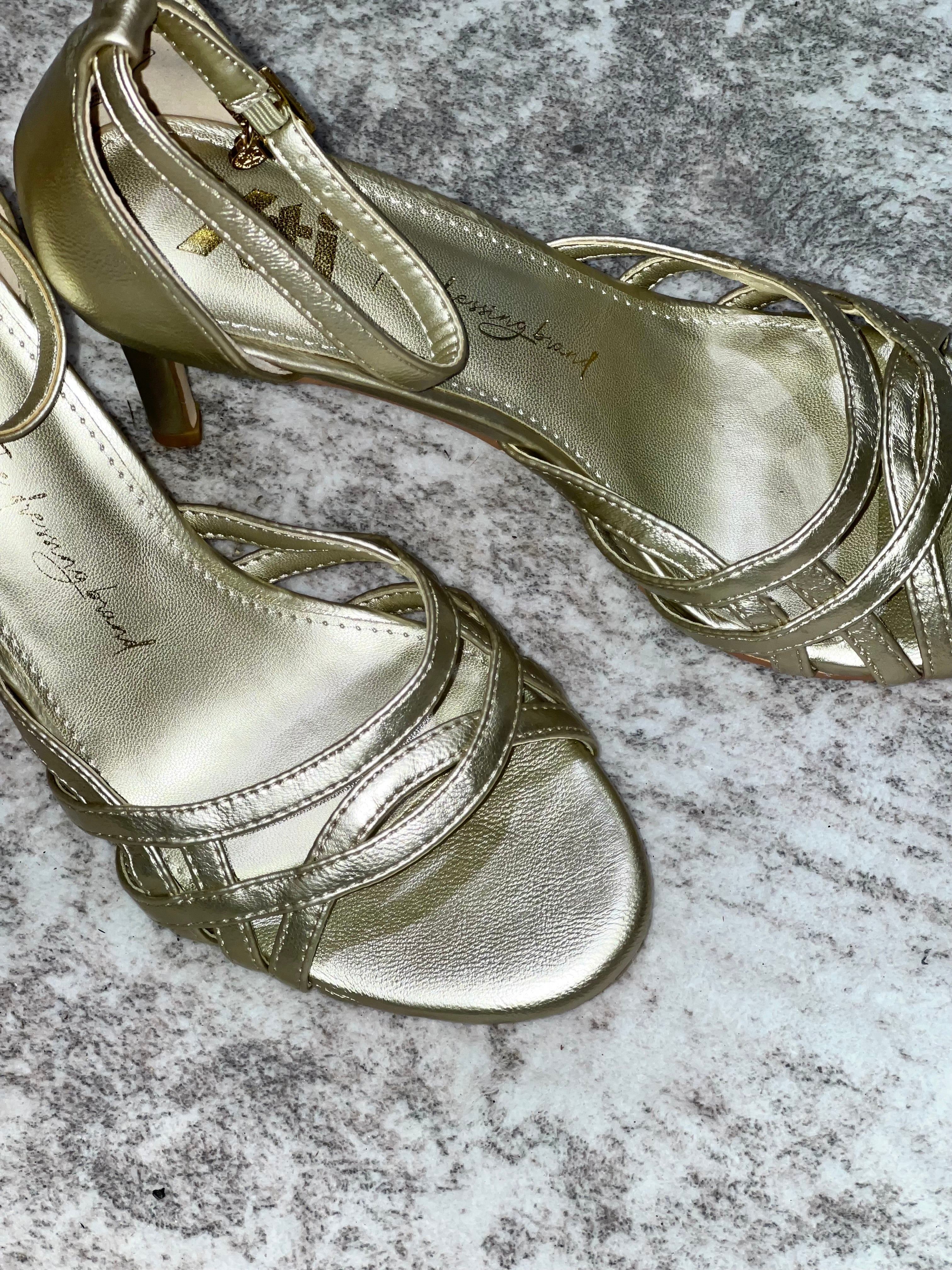 Gold Peep Toe Heeled Sandals
