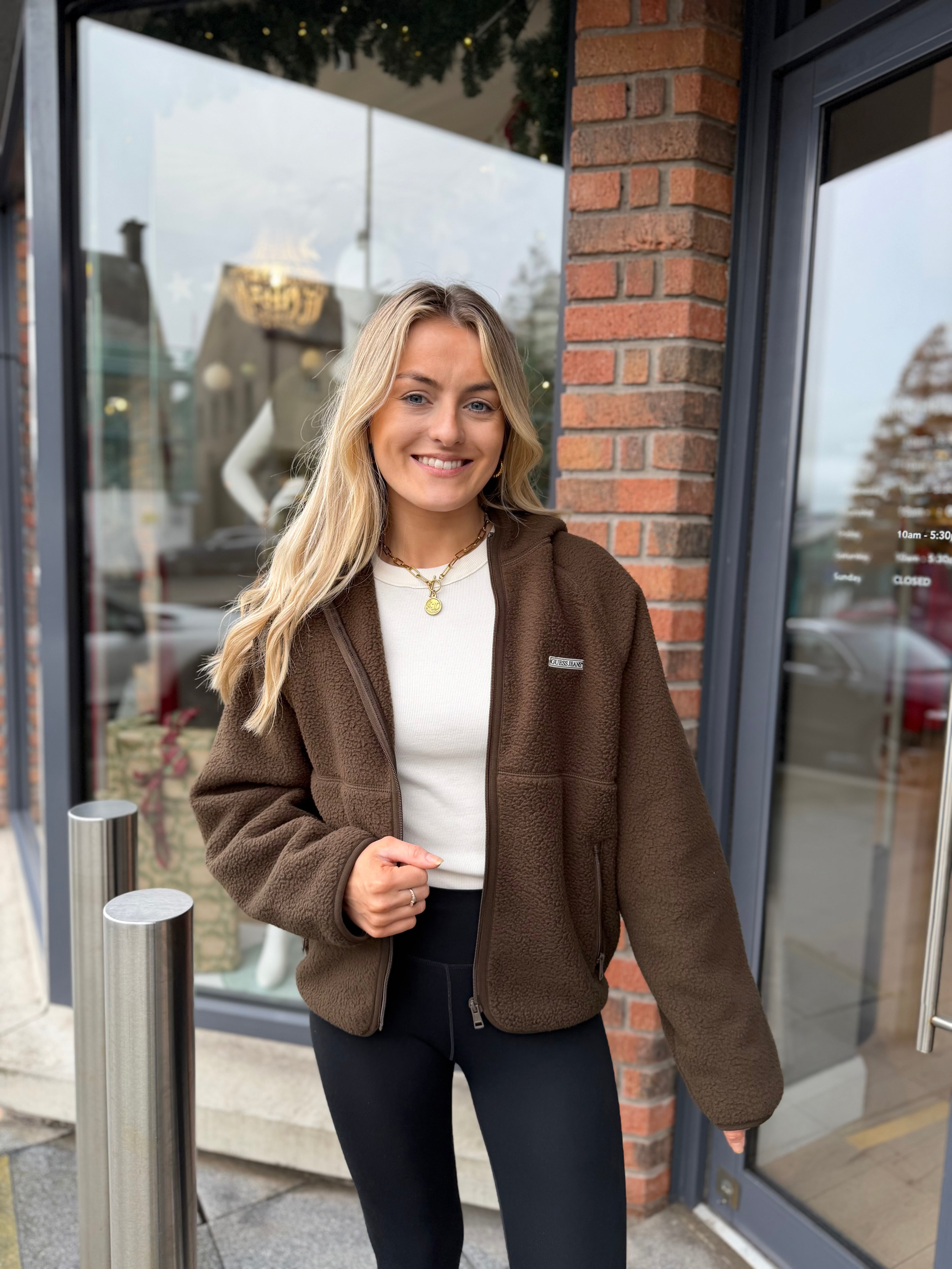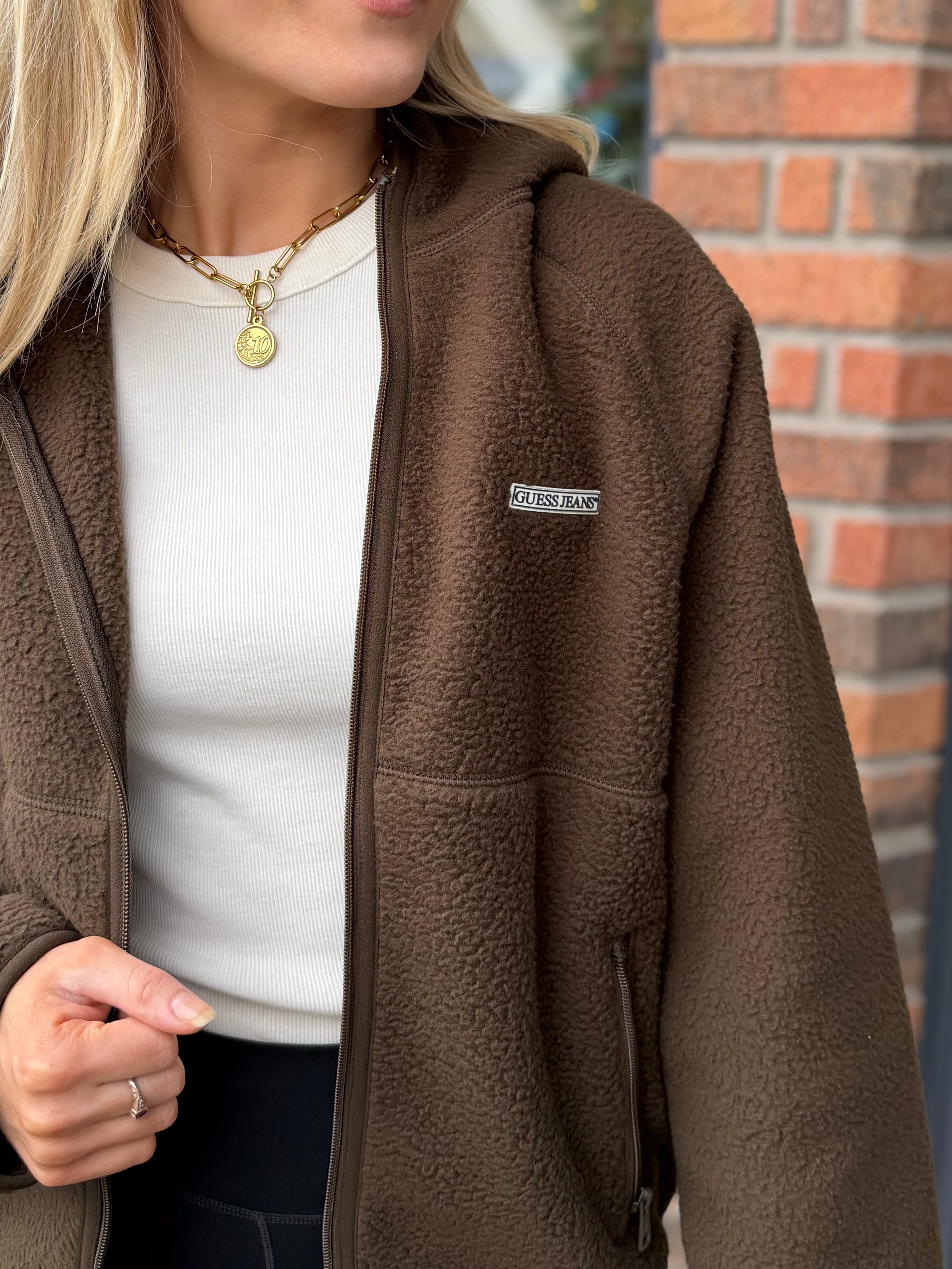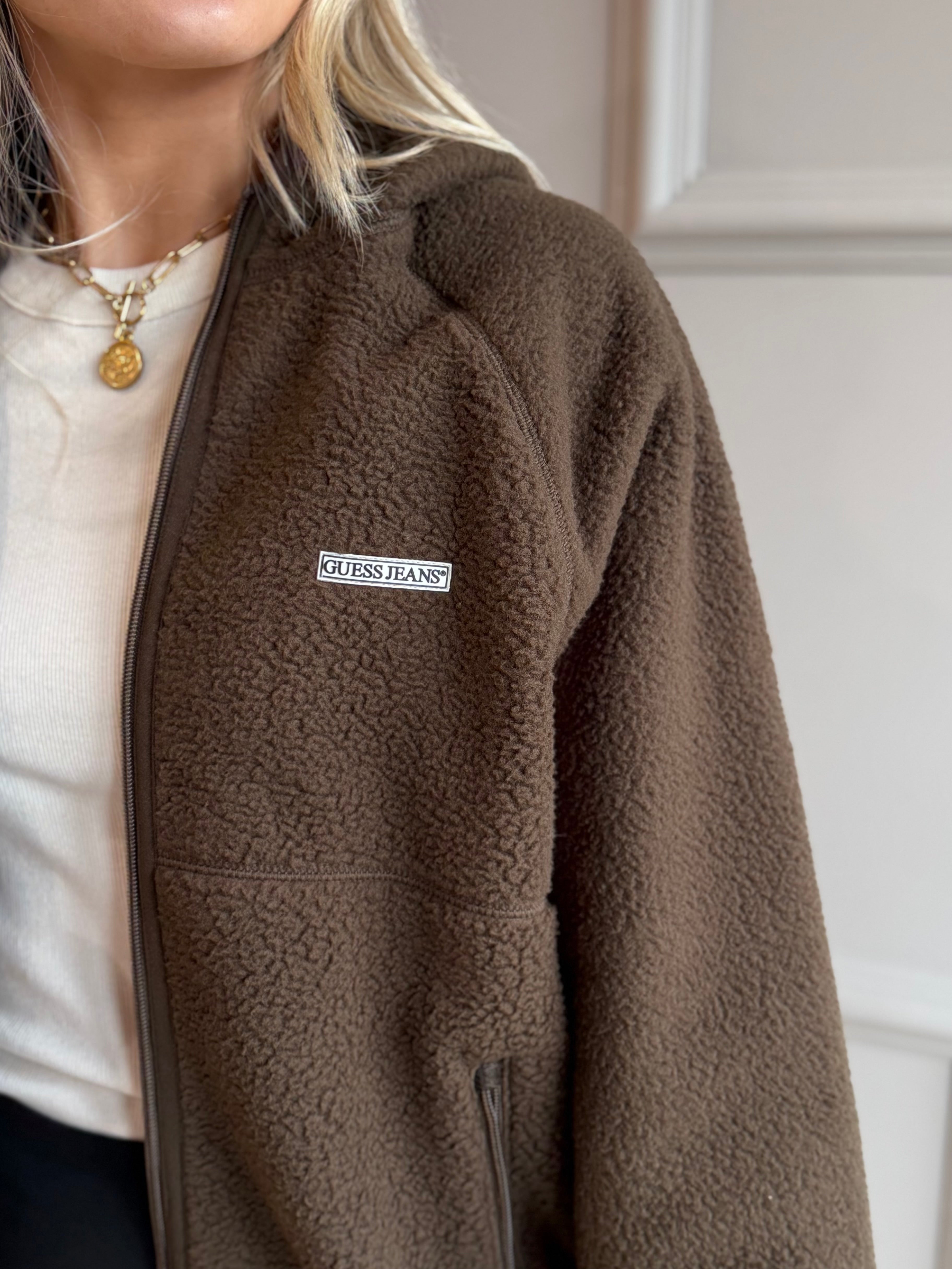 Guess Hooded Sherpa Jacket - Khaki Brown