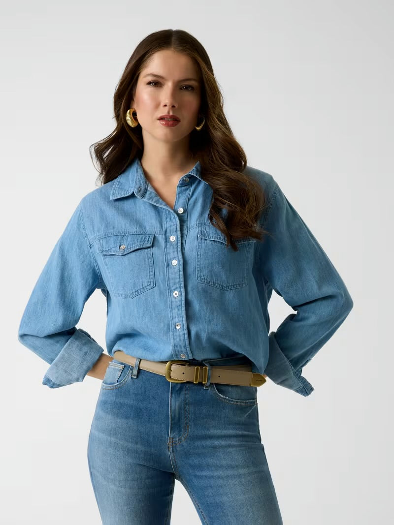 Denim shirts. Long sleeves. Shirt collar. Regular fit. Chest pockets. Buttons fastening. The model is wearing size S.Total lenght: 54,5...