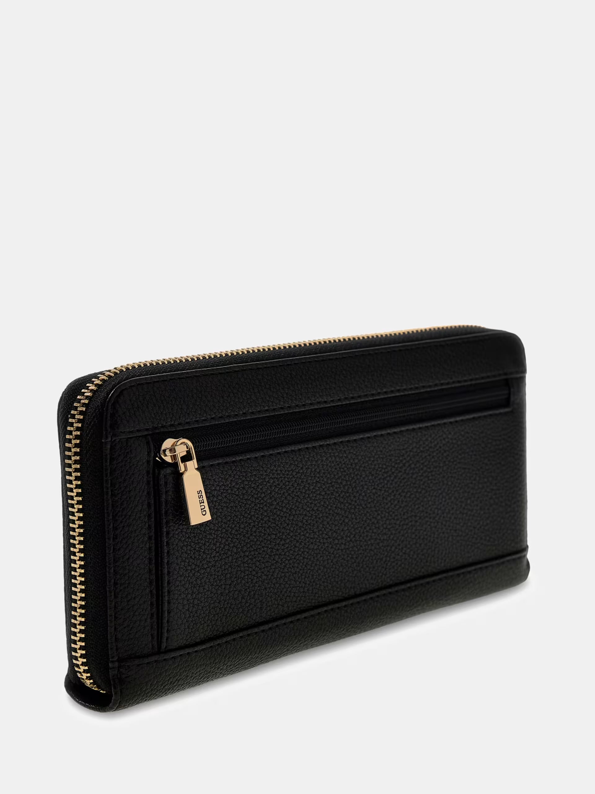 Faux leather outer. Zip closure. Gold hardware. Family: Marsha.Main compartment with pocket and internal coin purse with zip.Credit card slots.Front...