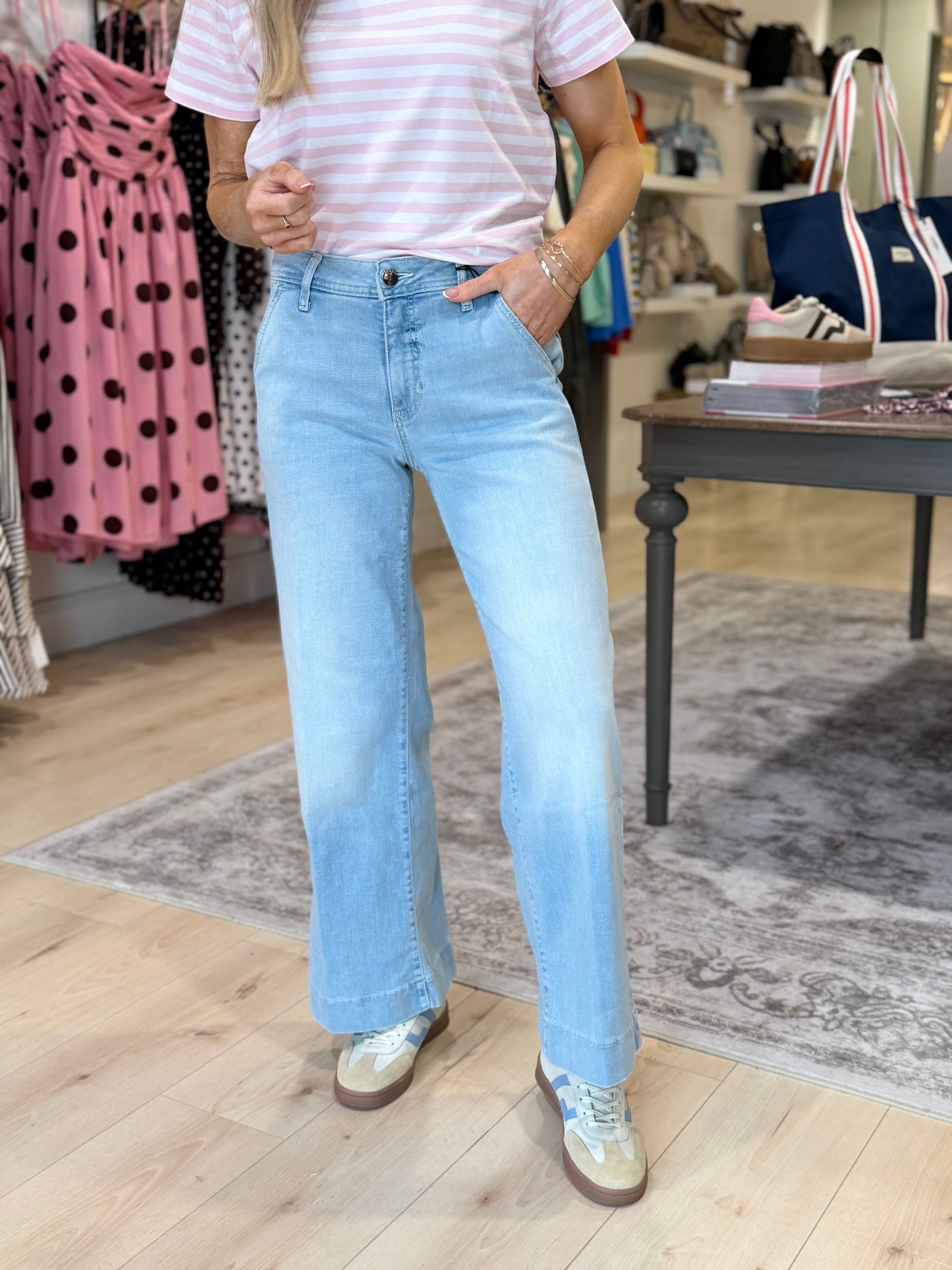 Crop Jeans. Wide-leg. Chino. Relaxed fit. High rise. Button fastening. The model is wearing size 27.Inseam lenght 29 inch /...