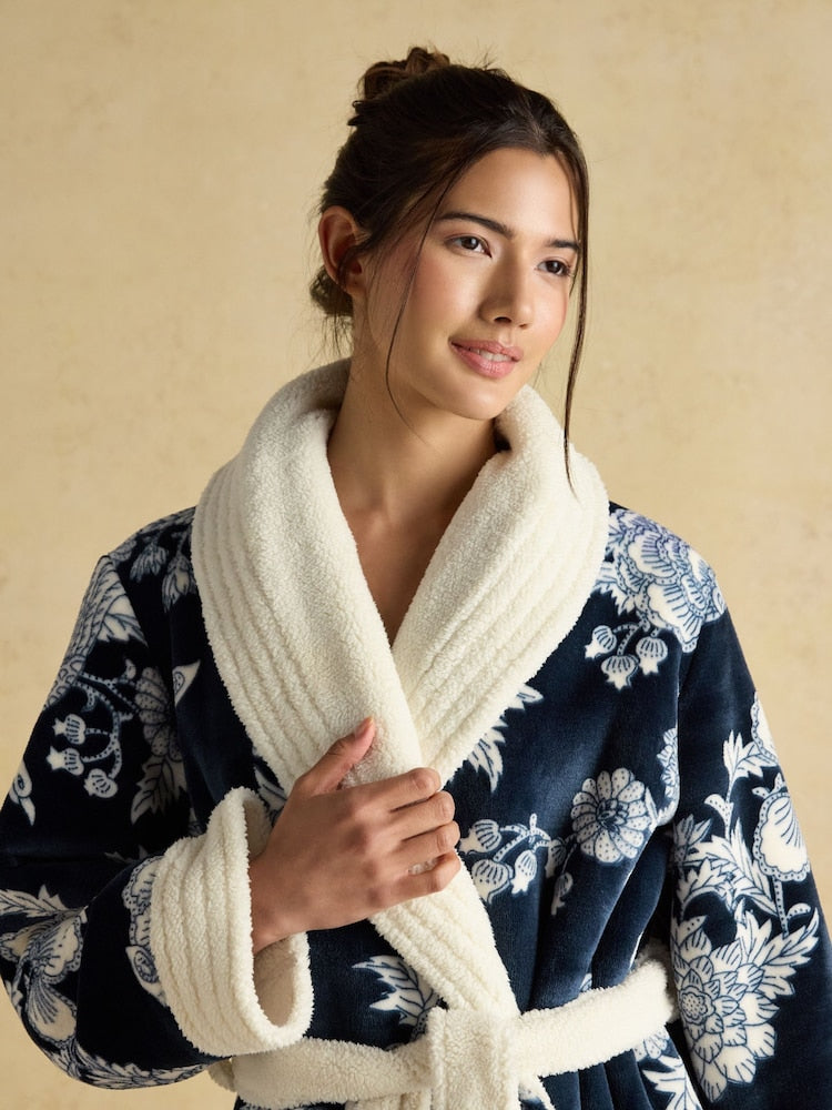 Joules Matilda Navy Flower Fleece Lined Dressin Gown