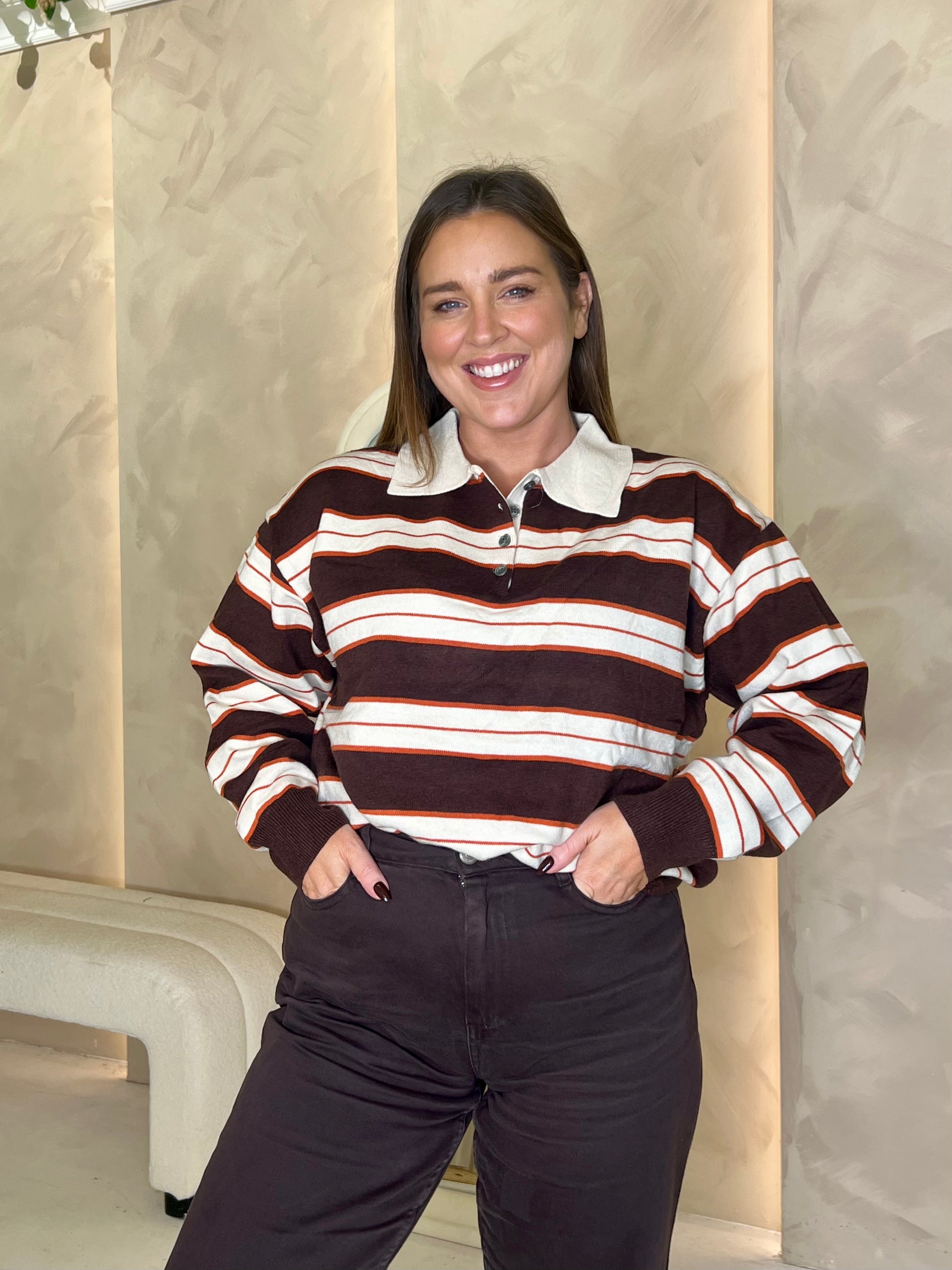 Knit Rugby Top - Coffee and Orange