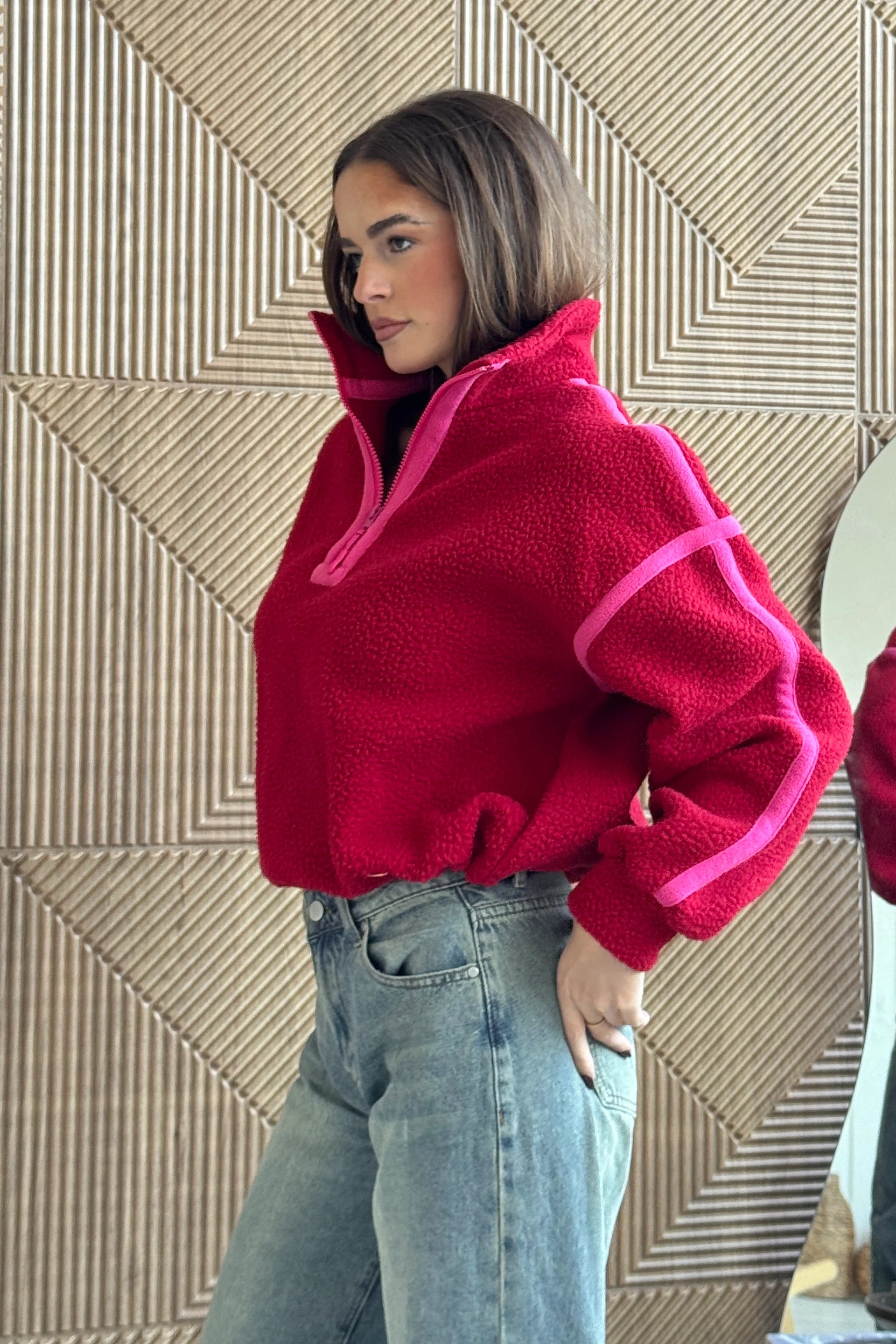 Lulu Contrast Binding 1/4 Zip Fleece - Red/Pink