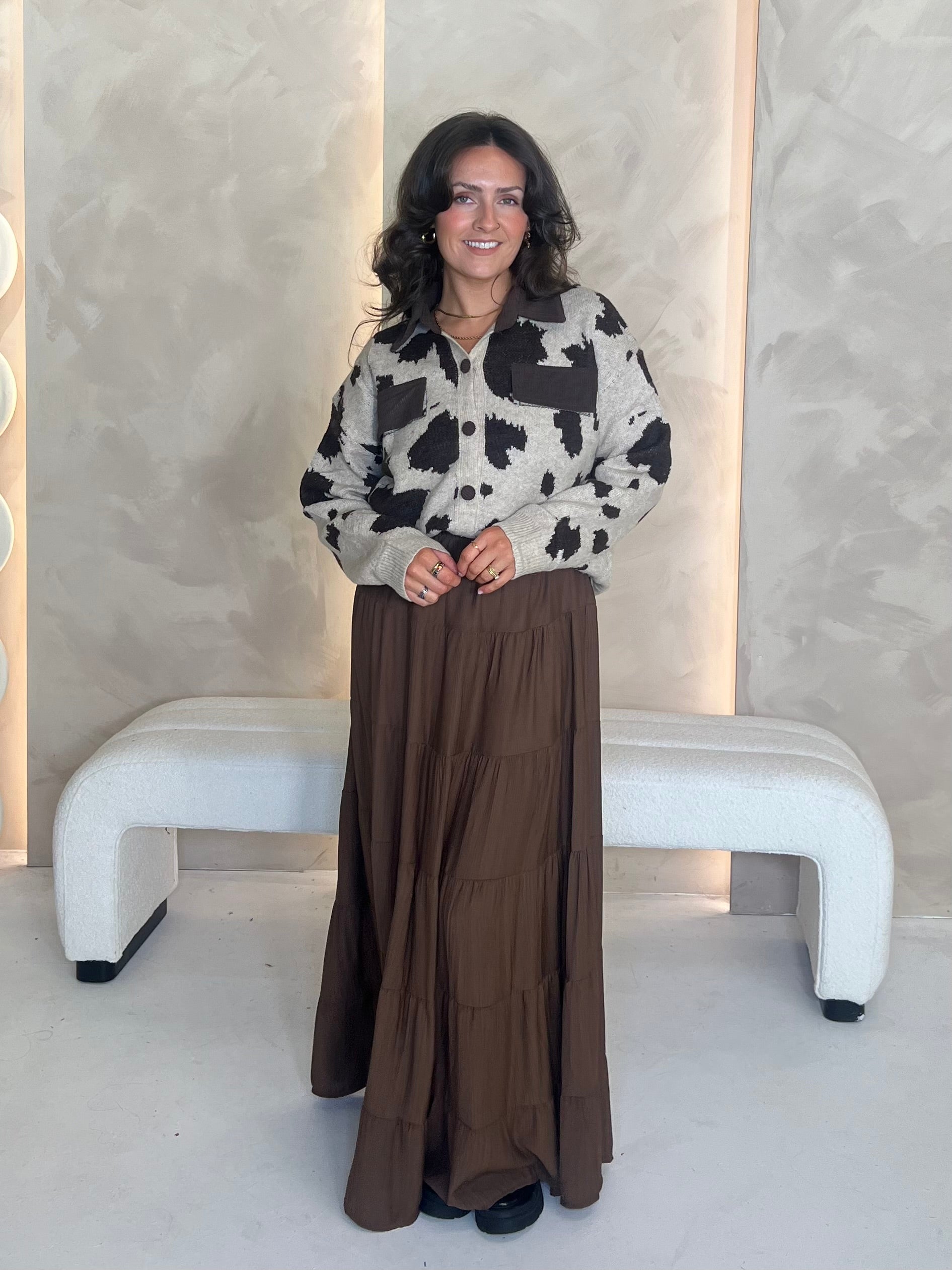One Size (UK8-14) Embrace effortless style with this Maxi Gypsy Skirt in warm brown. Its tiered design adds graceful movement...