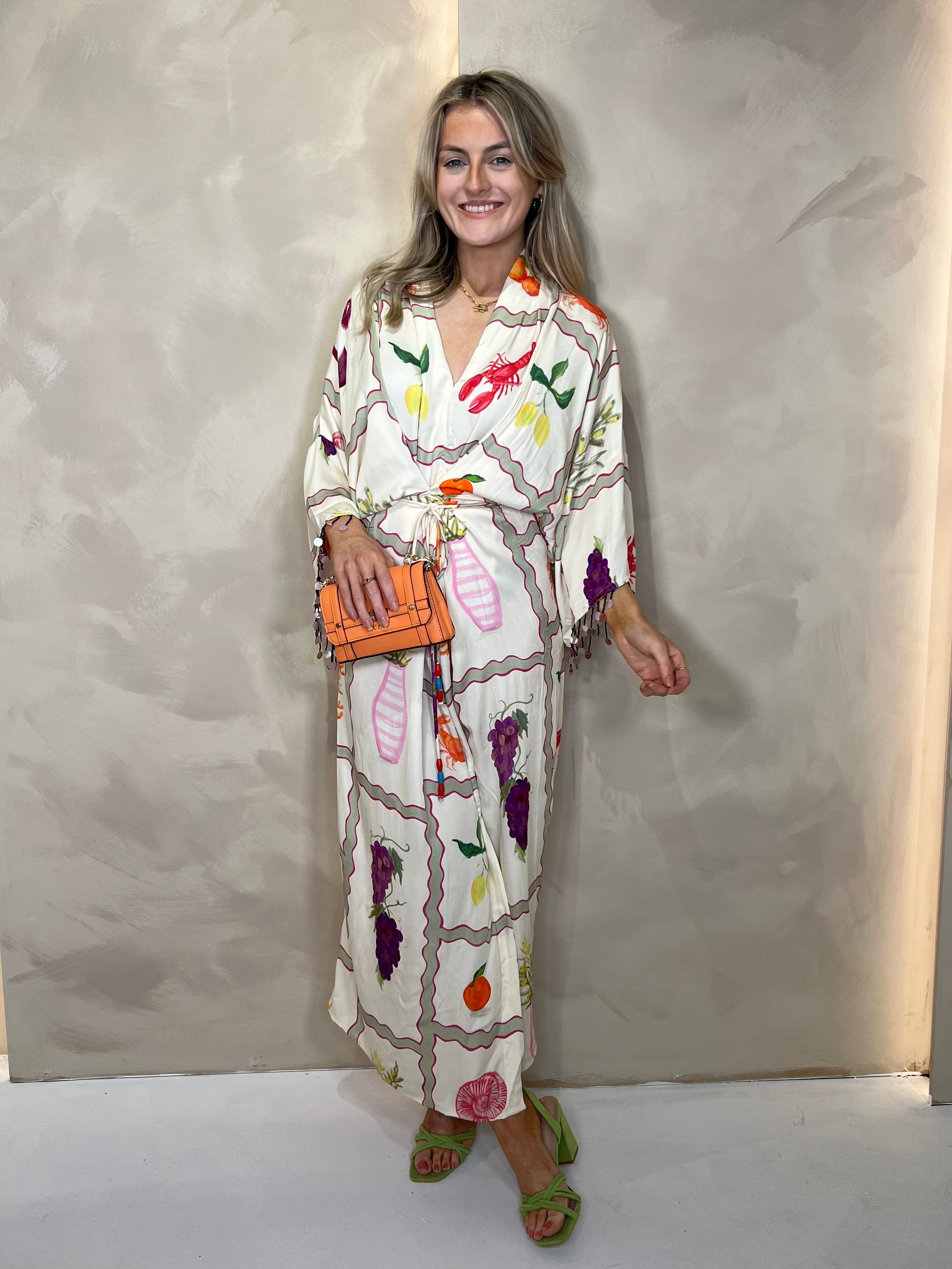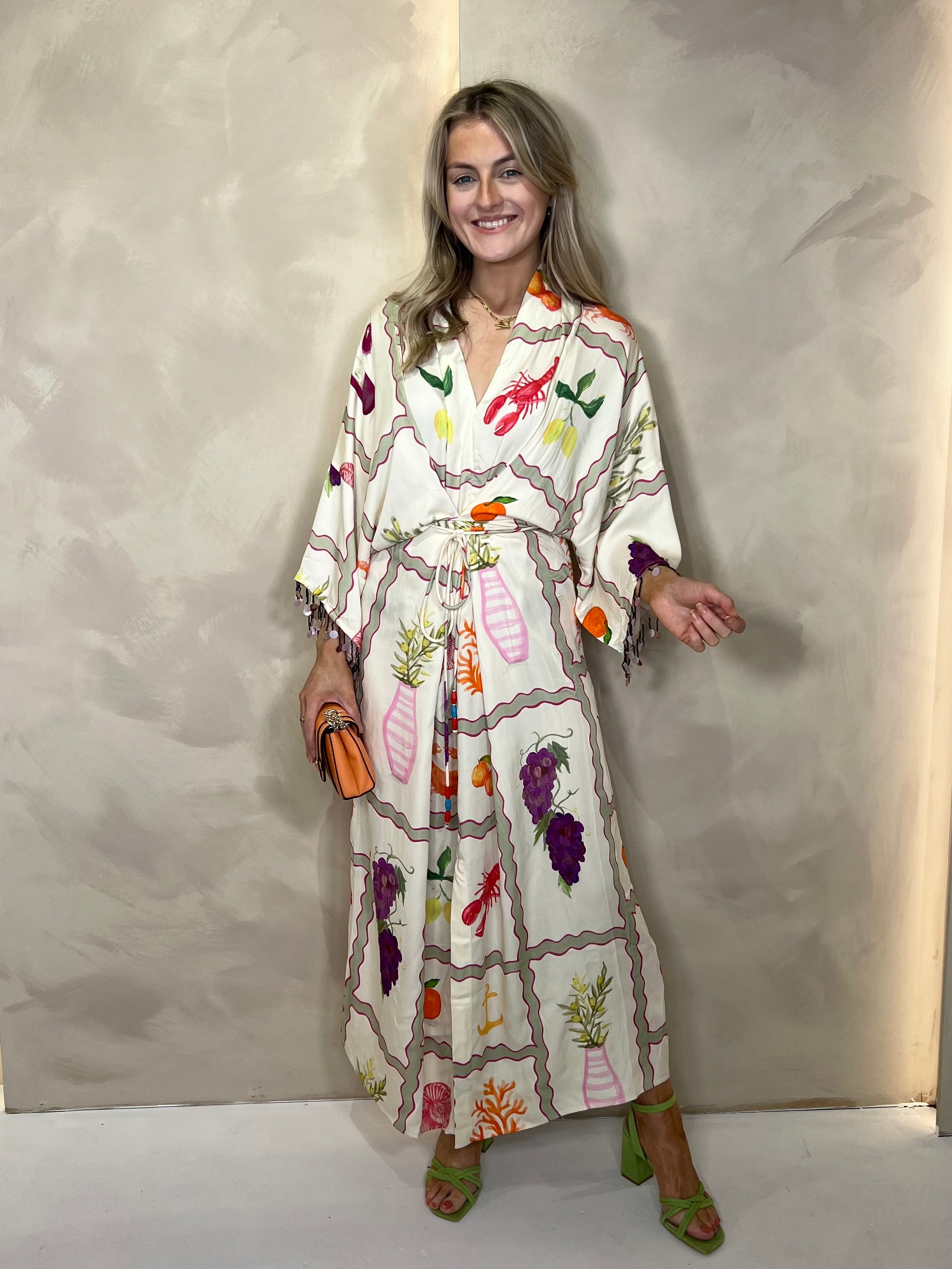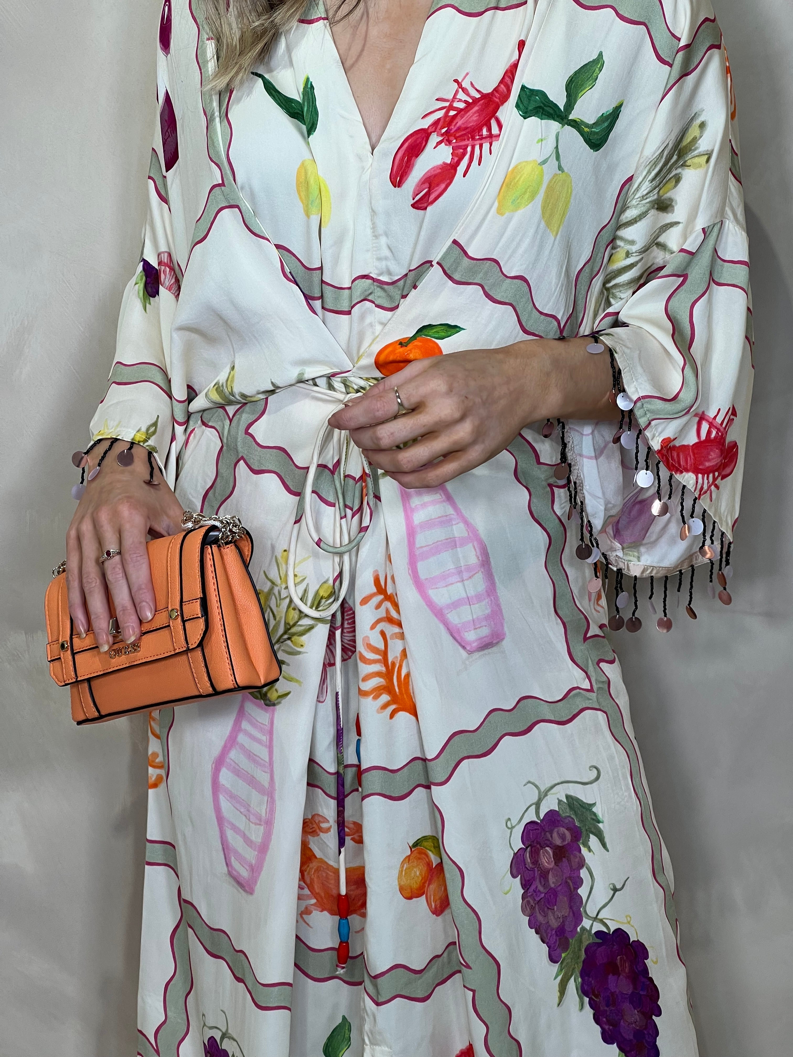 The Miller Kaftan Wrap Midi Dress with Tie Waist, Front Split and Beaded Trim This show stopping Hope &...