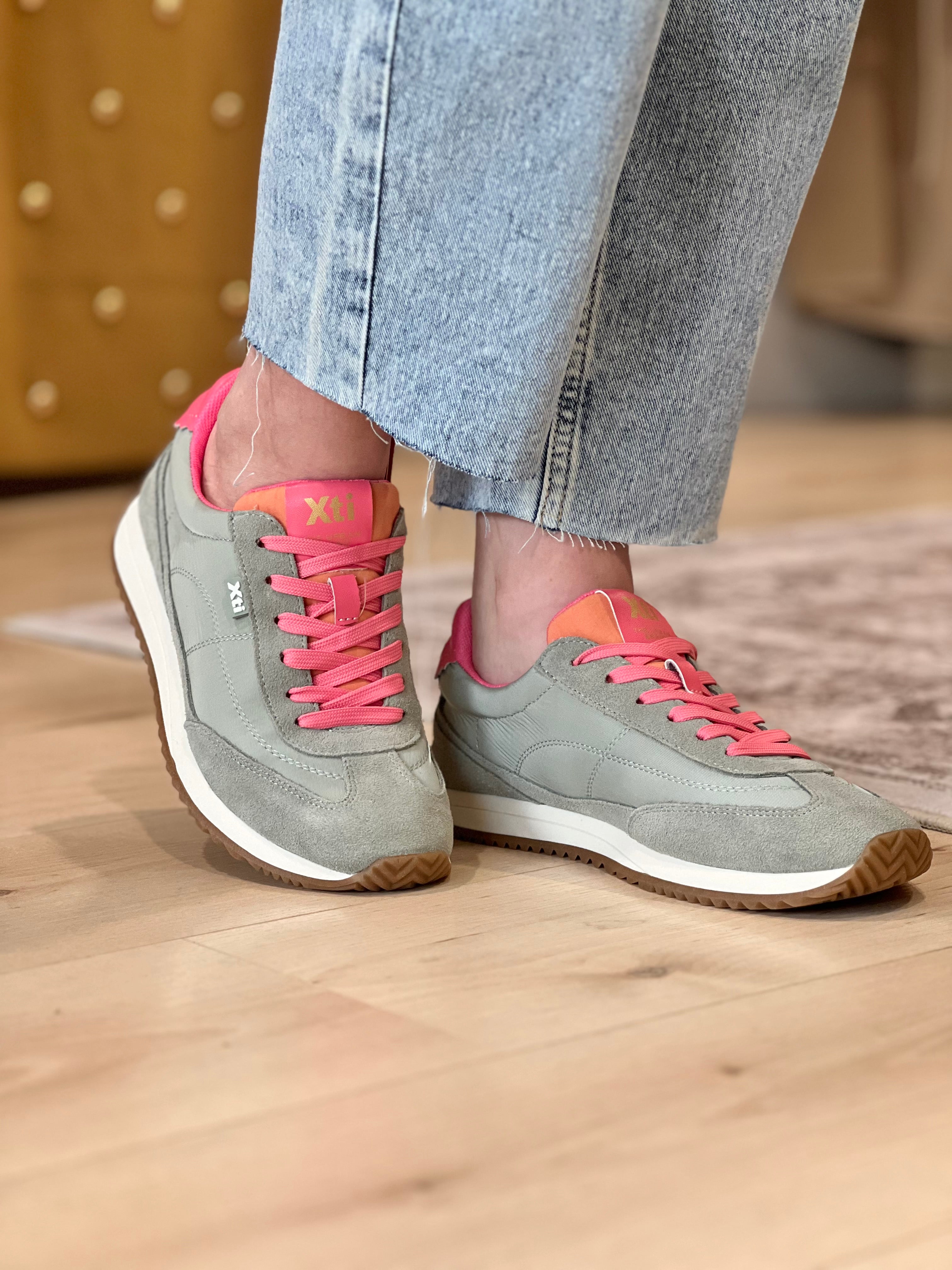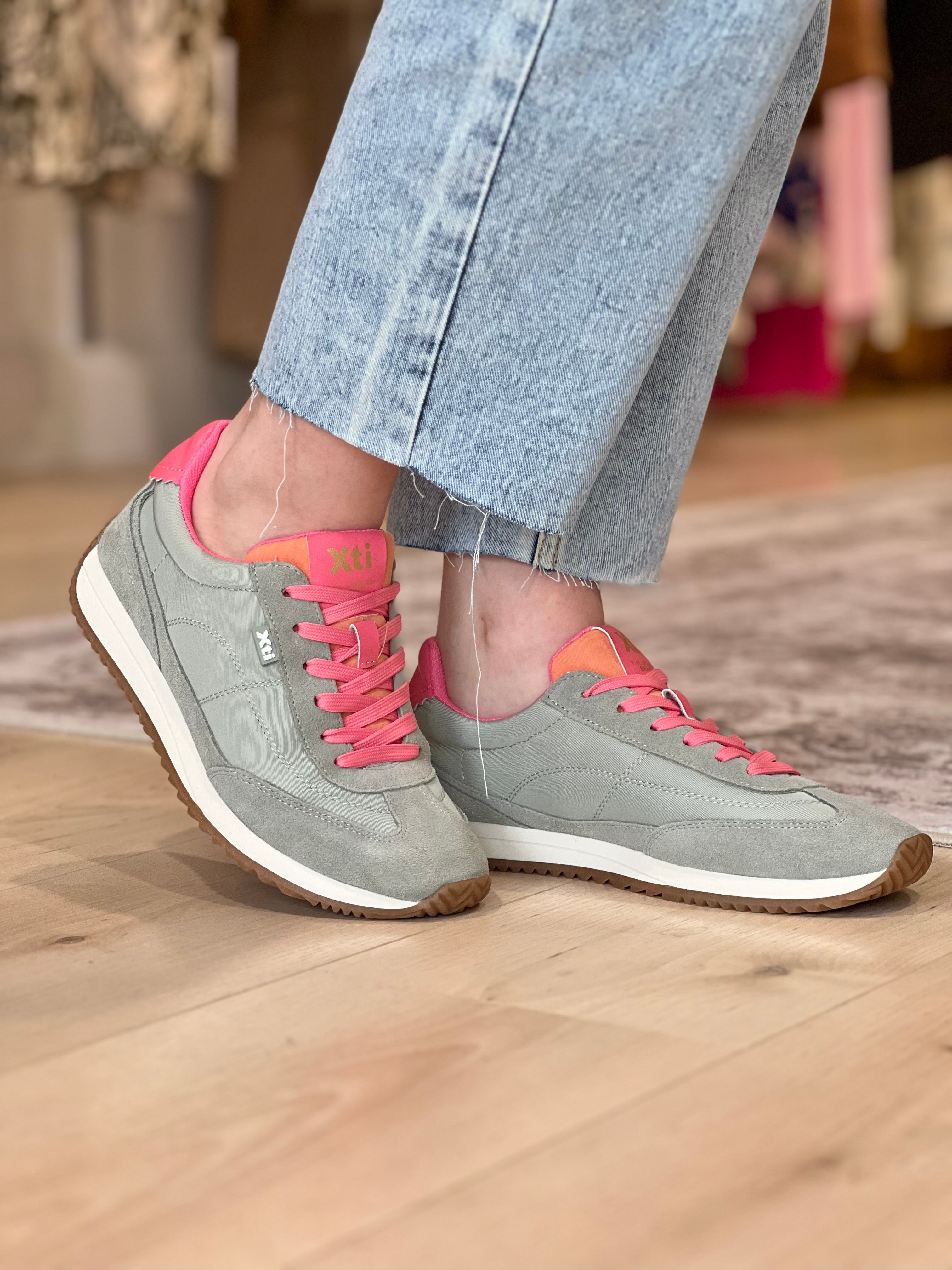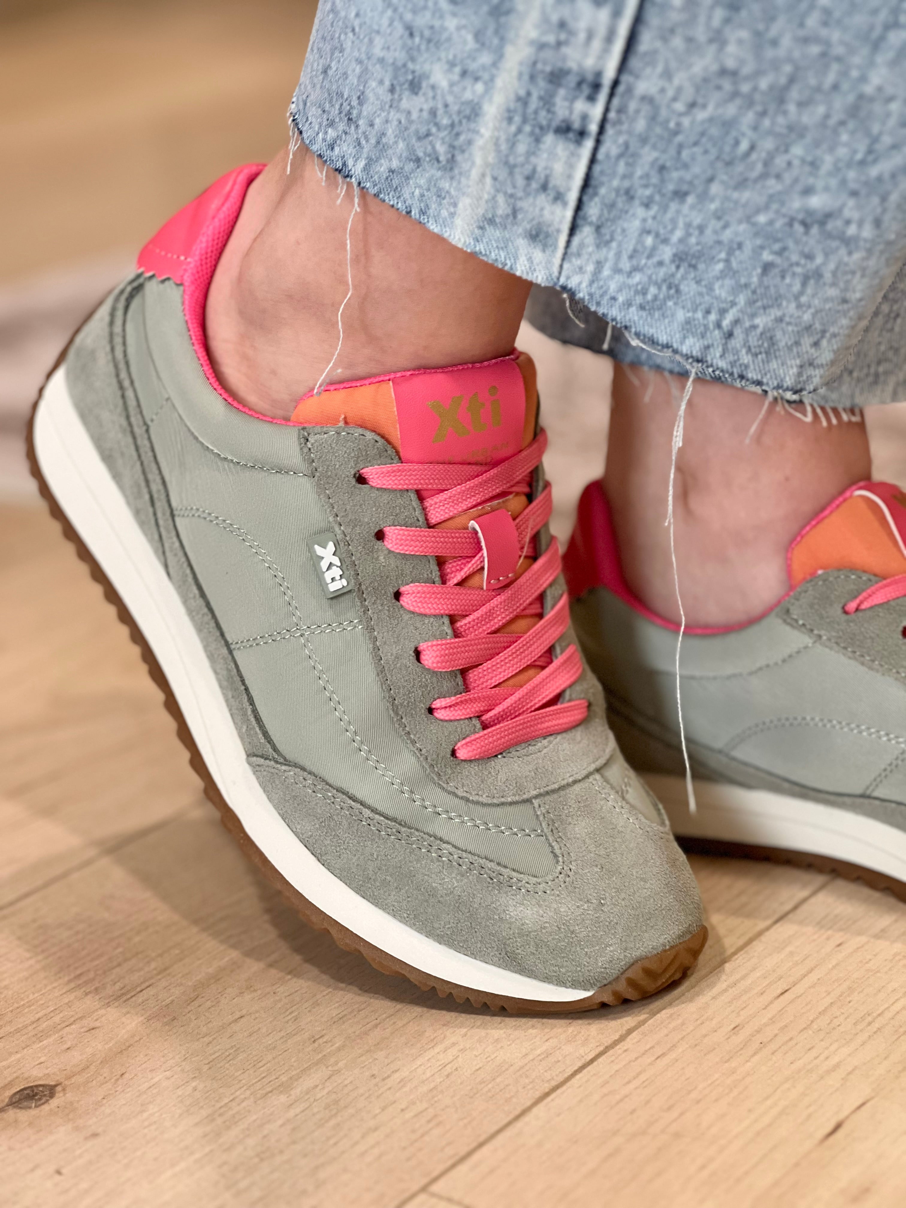 Mixed Textile Sneaker - Khaki/Pink