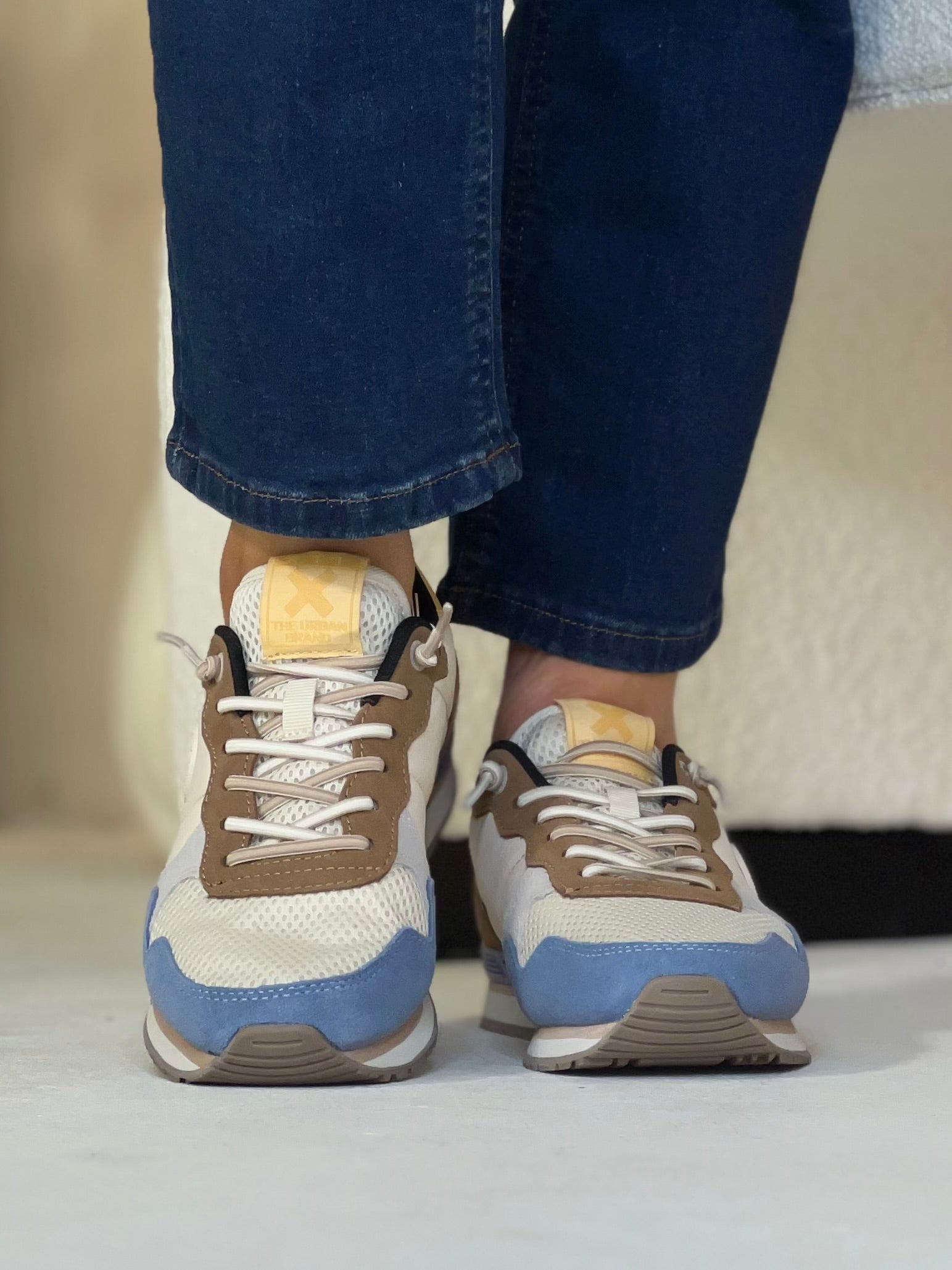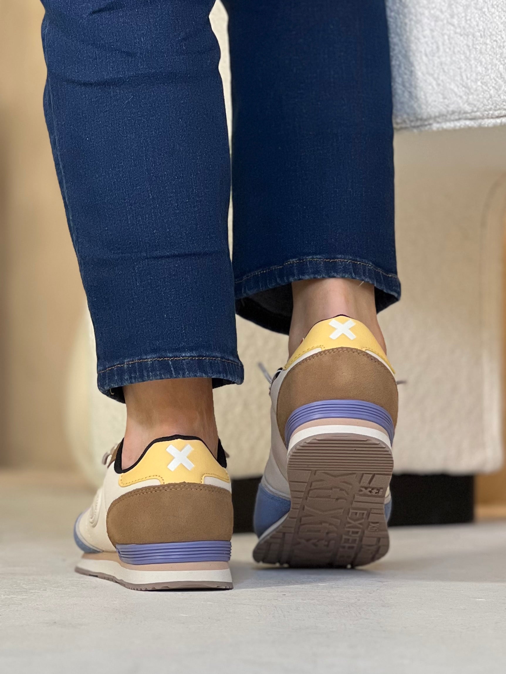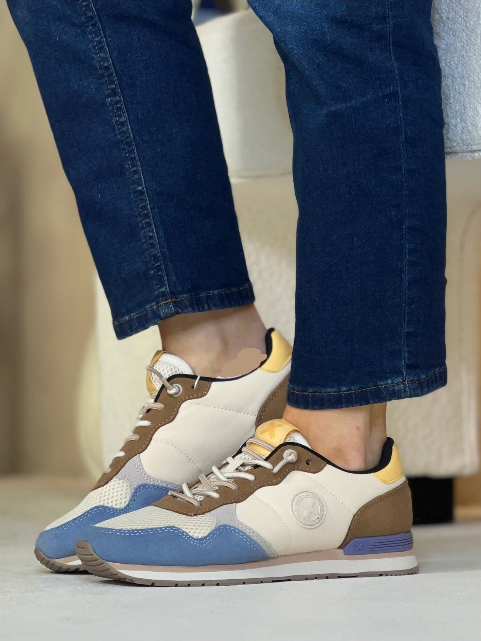 Multi Textile Colour Block Sneaker - Beige/Lemon/Blue