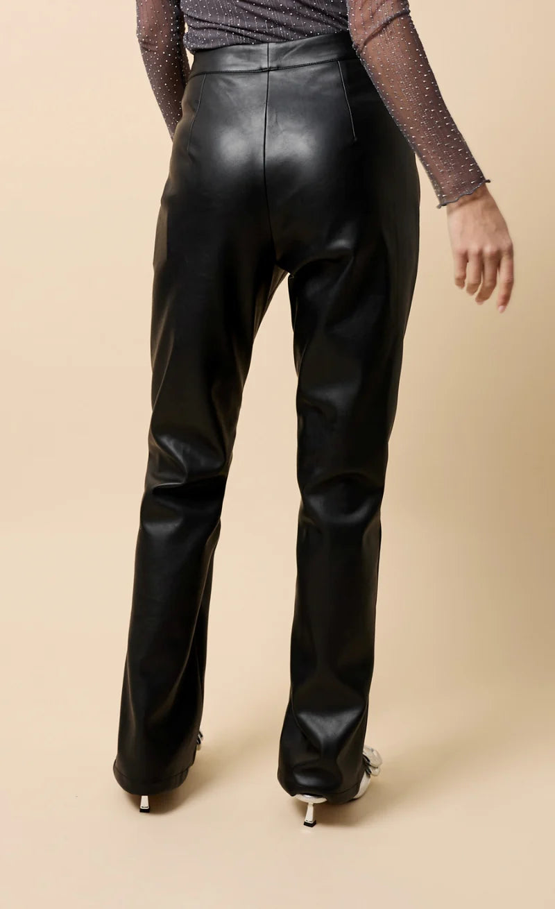 Natasia PU Split Wide Leg Trousers - Black