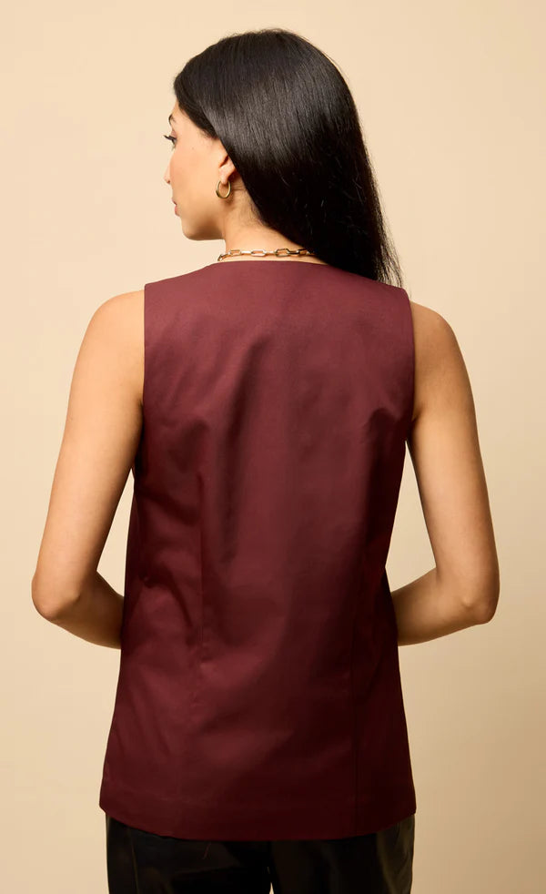 Odette Accent Button Waistcoat - Cherry