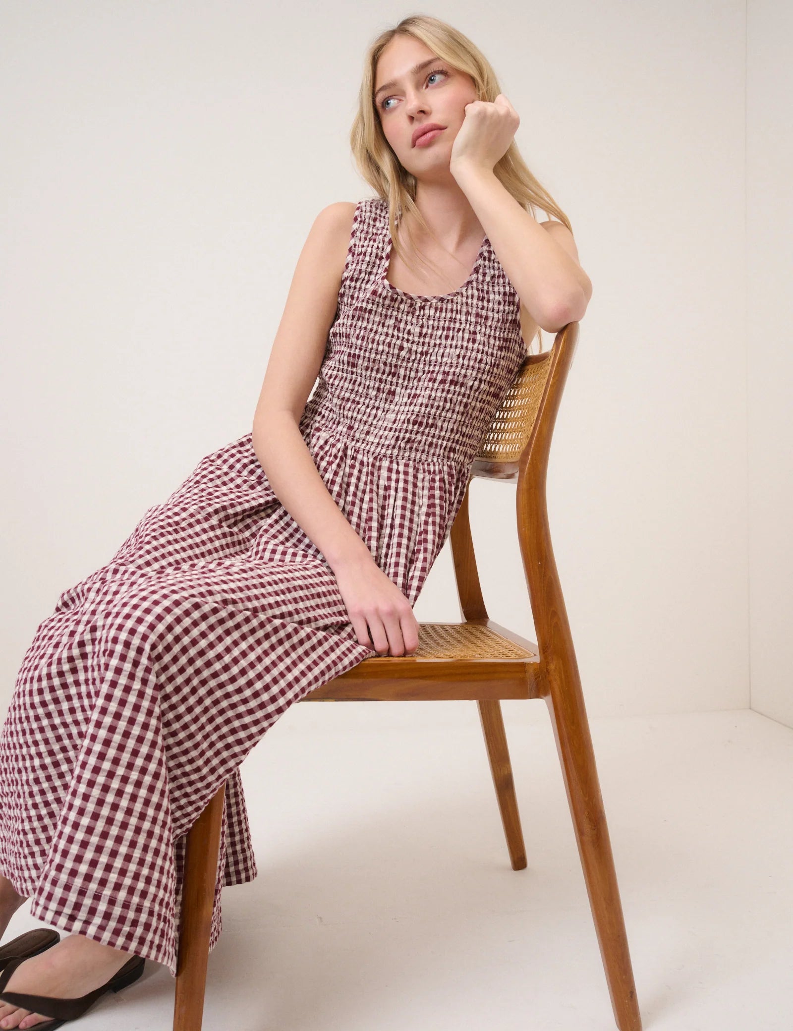Sleeveless Kinsley Midaxi Dress - Burgundy Gingham