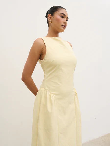 Designed for standout summer moments, the Sylvie Dress captures destination-ready elegance in a soft lemon hue. The clean slash neckline...