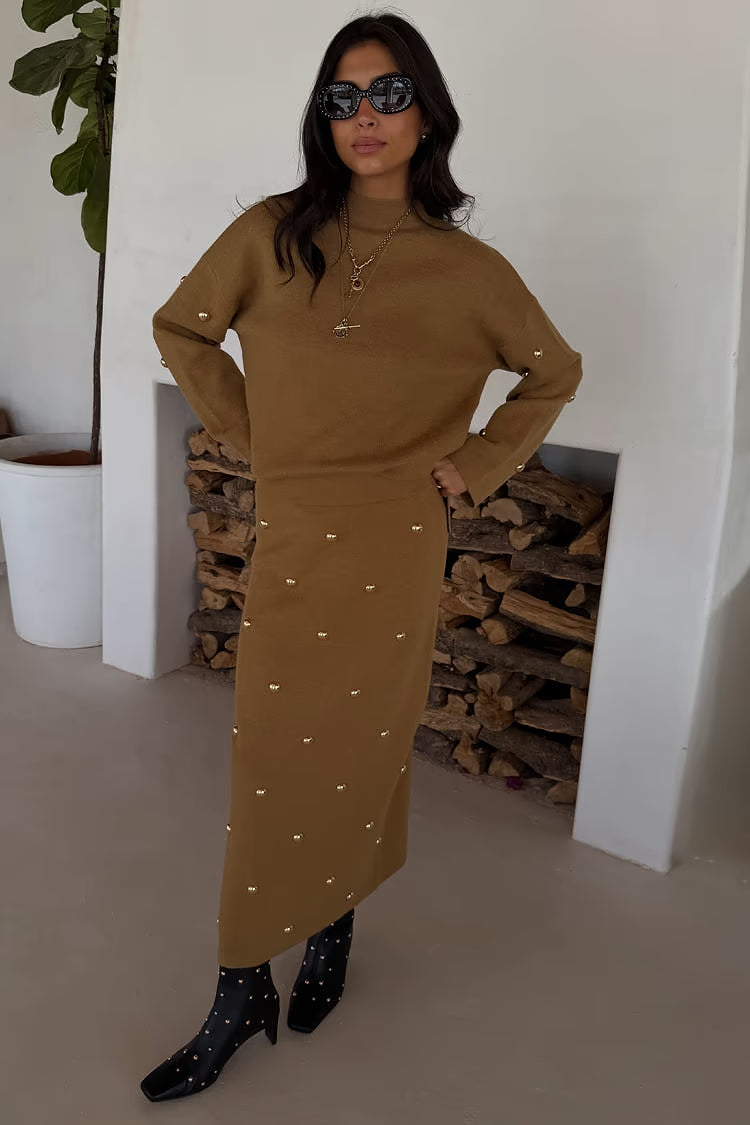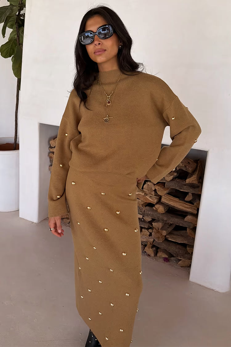 Tan Stud Knit Skirt