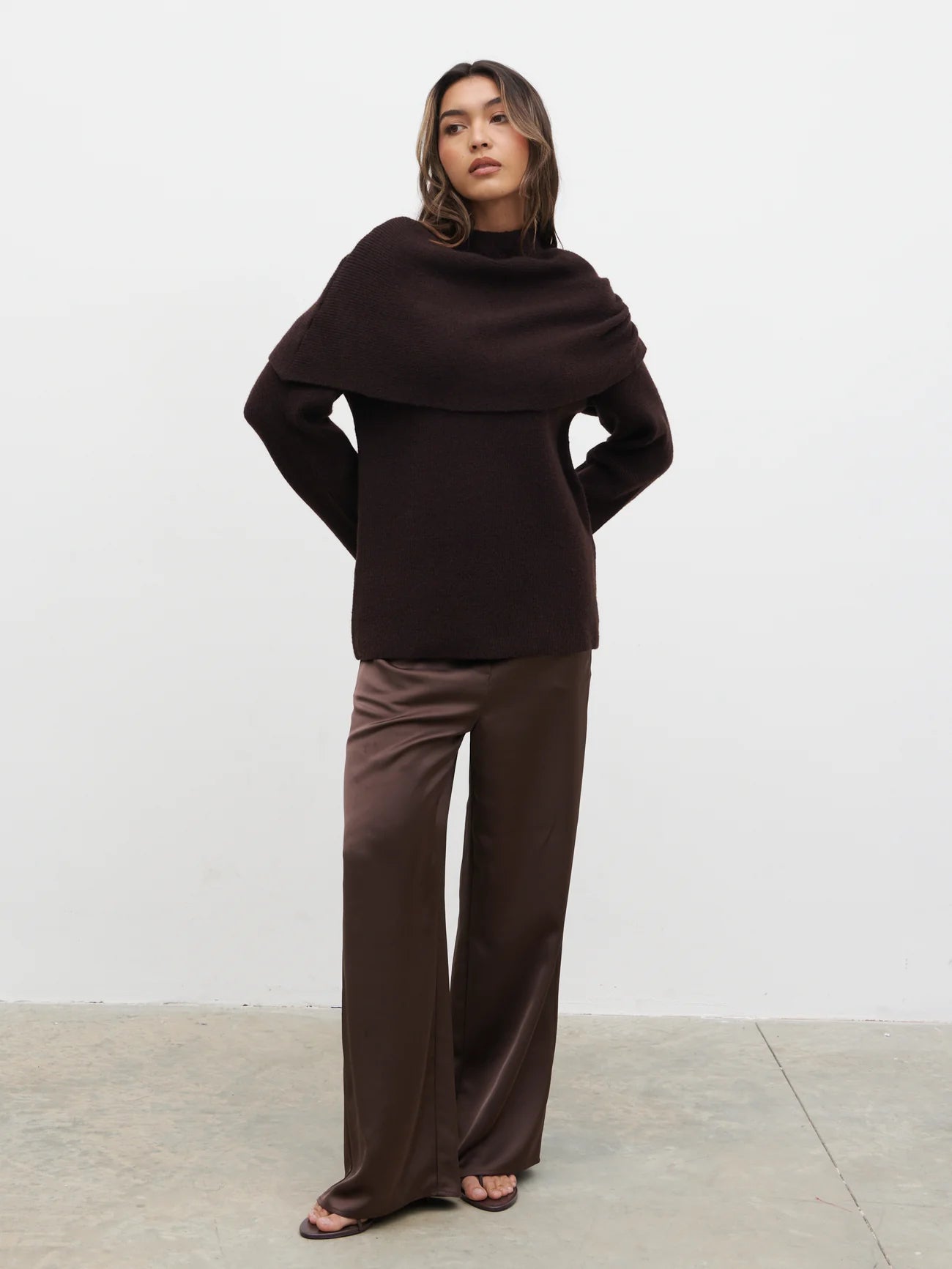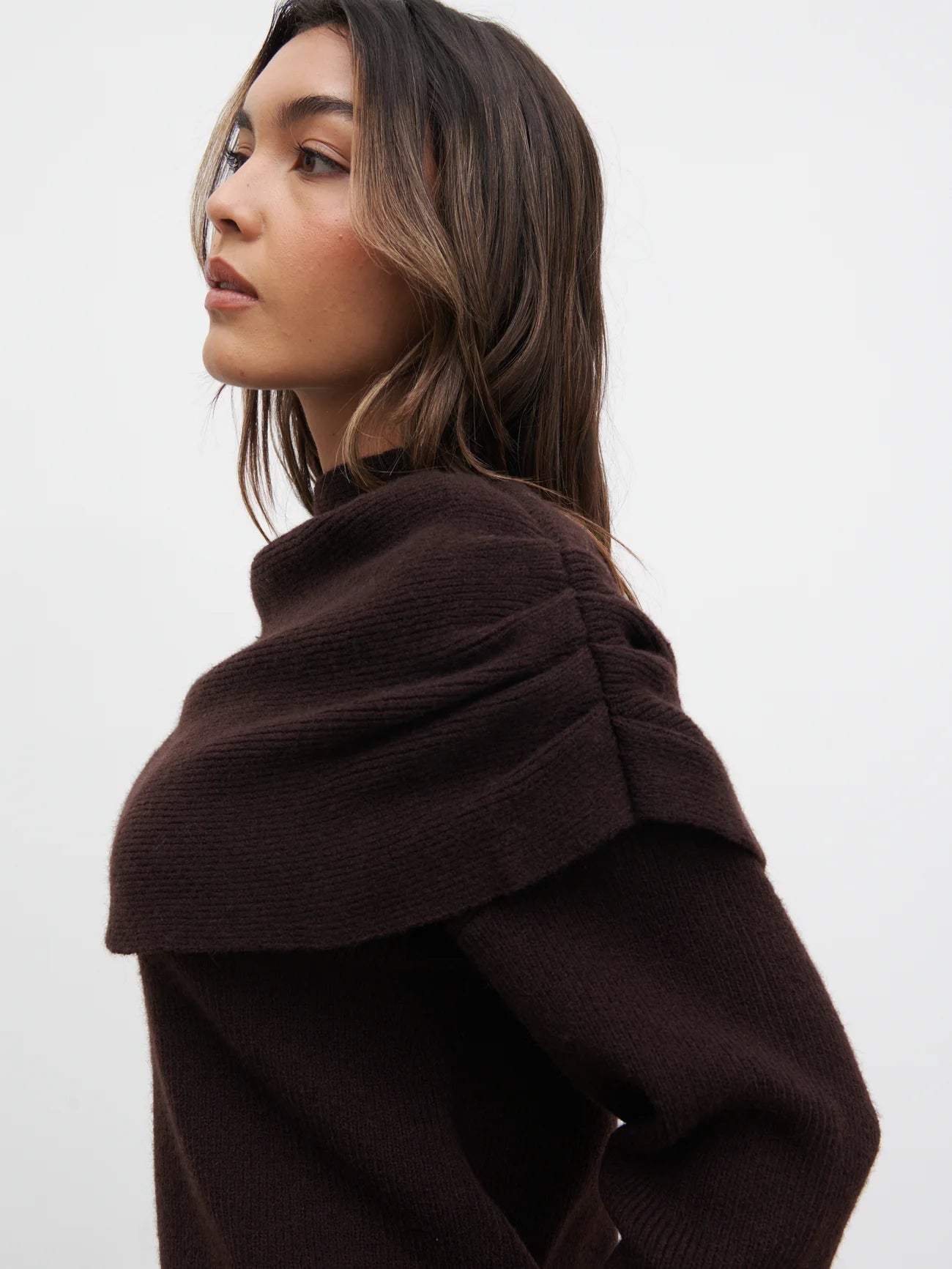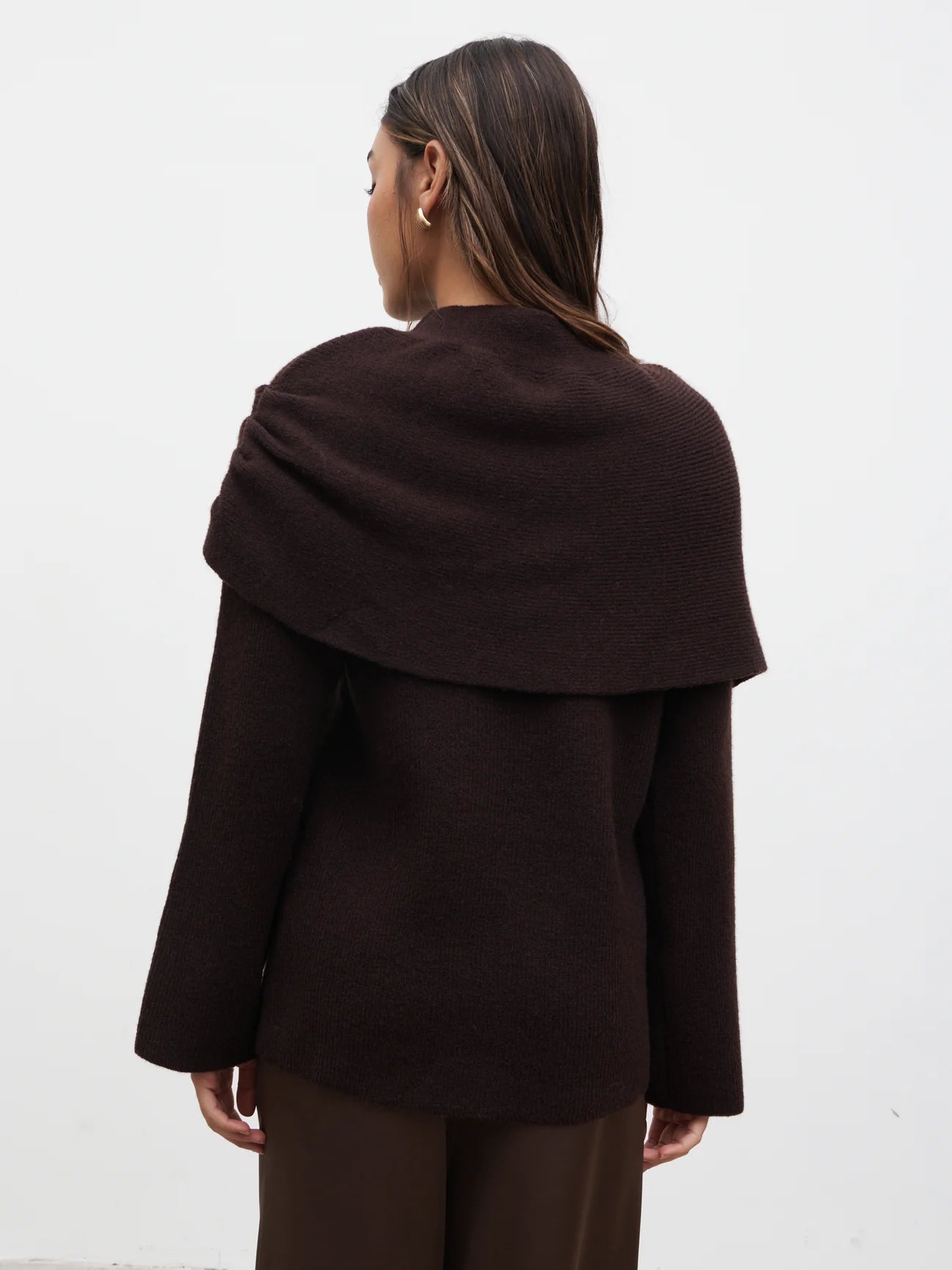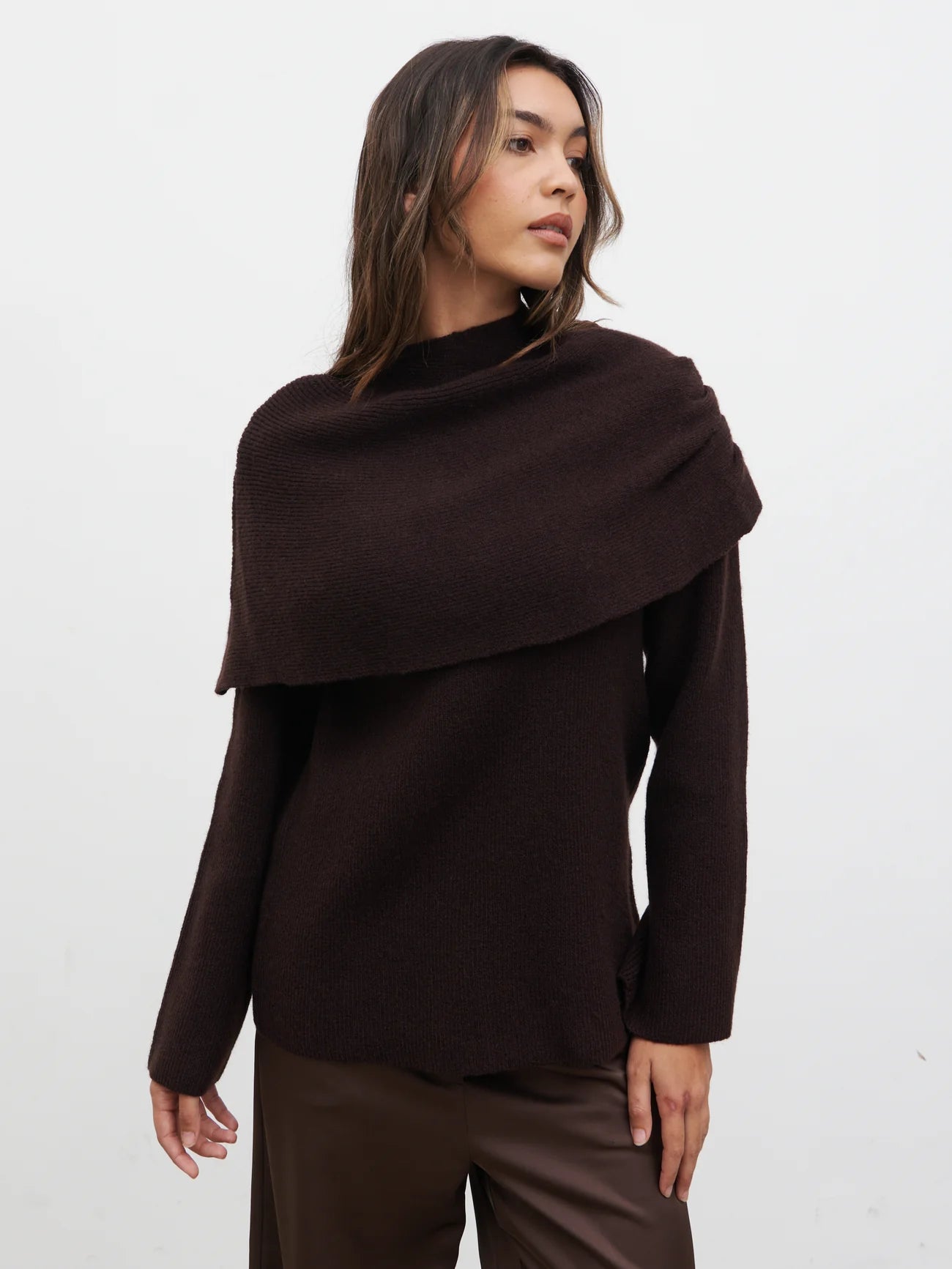 Tarla Exaggerated Drape Knit Jumper - Chocolate