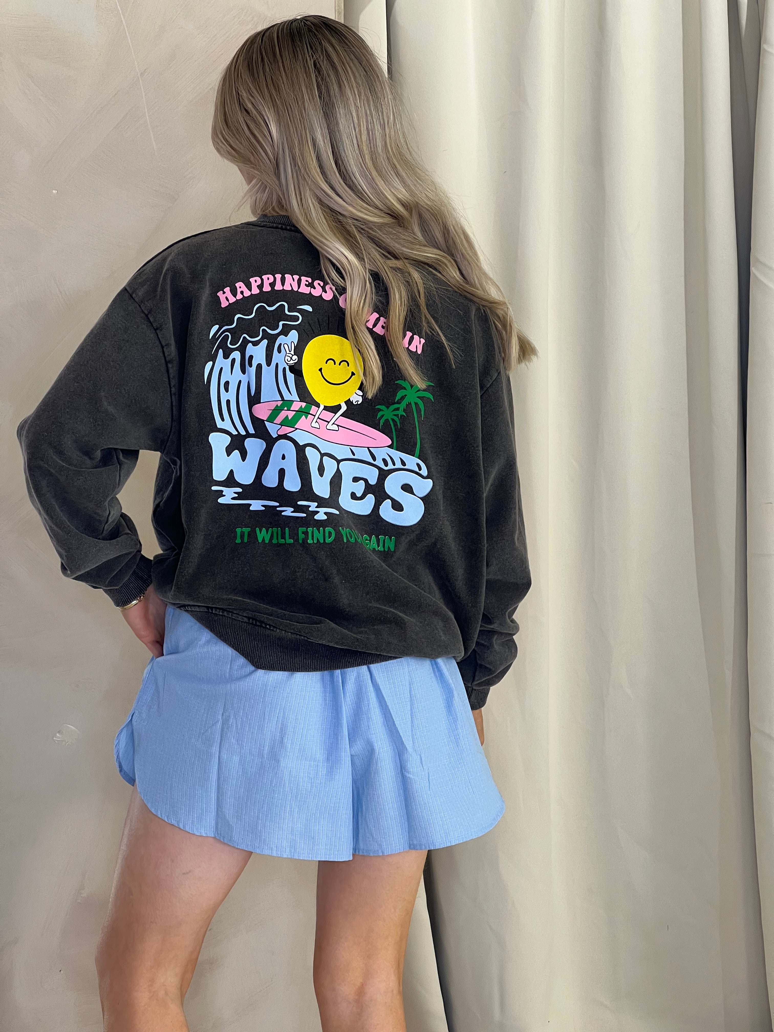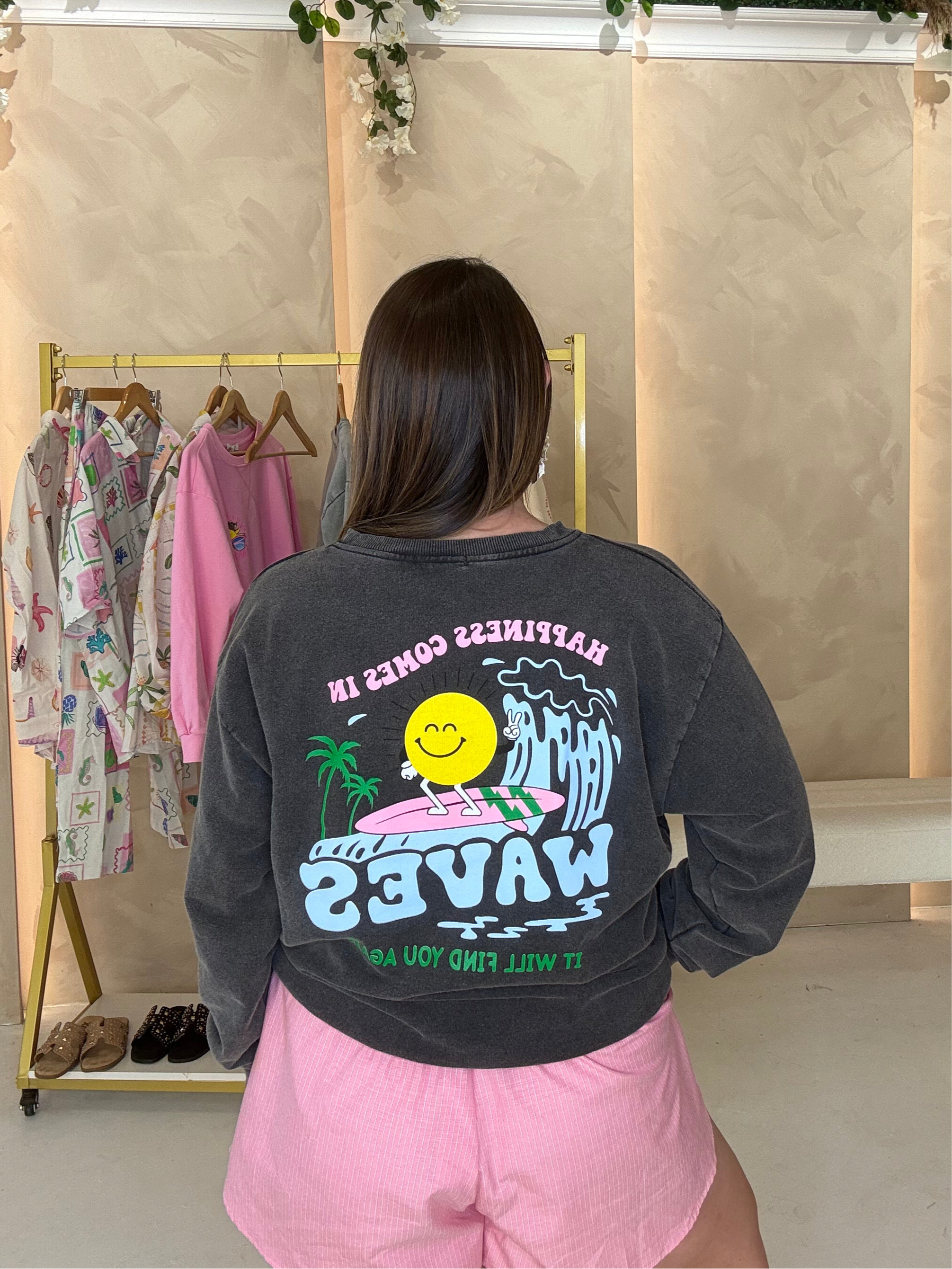 Stand out in this vibrant Wave Graphic Sweatshirt! With a large print on the back and a smaller one on...